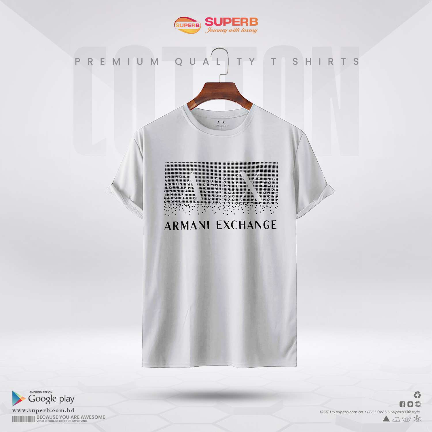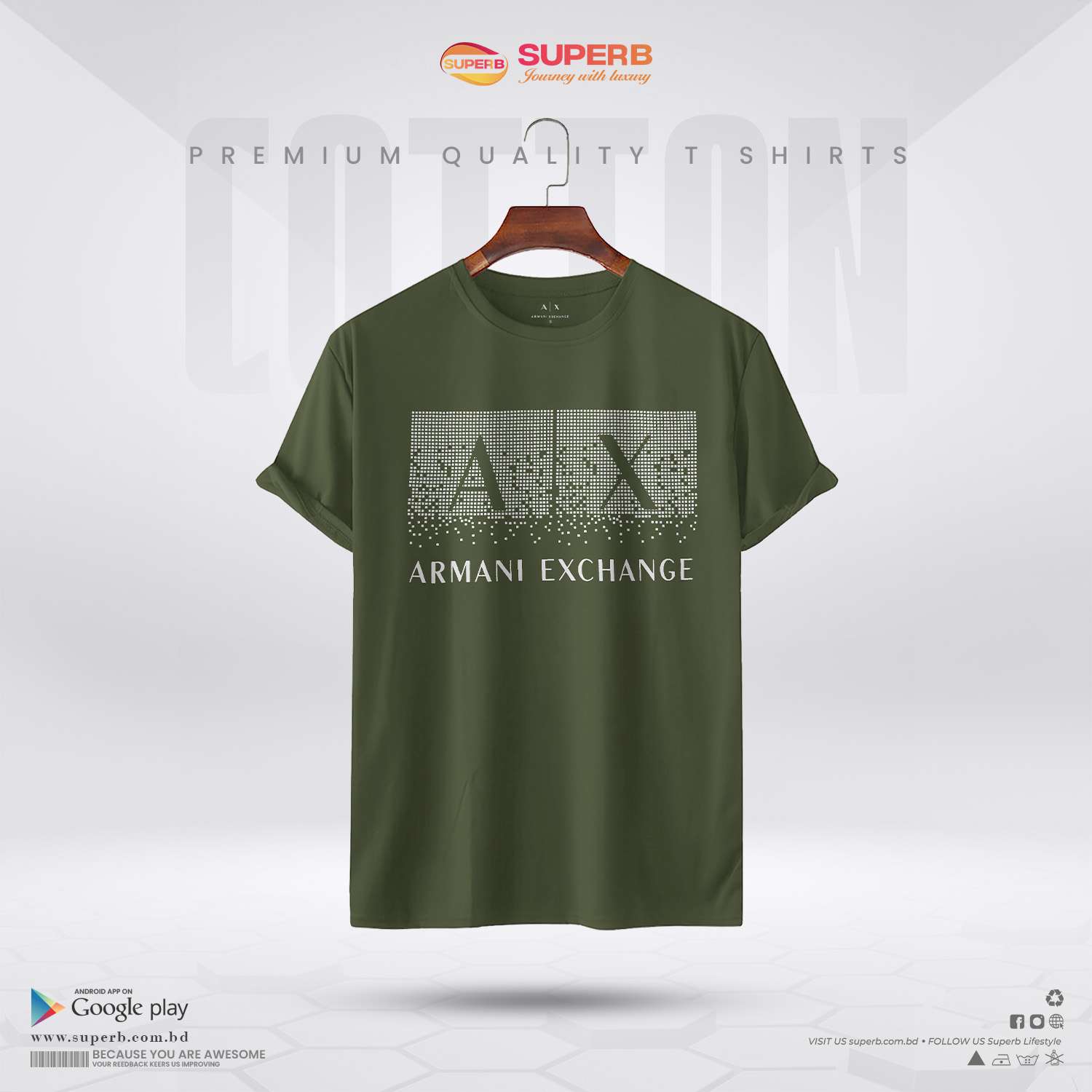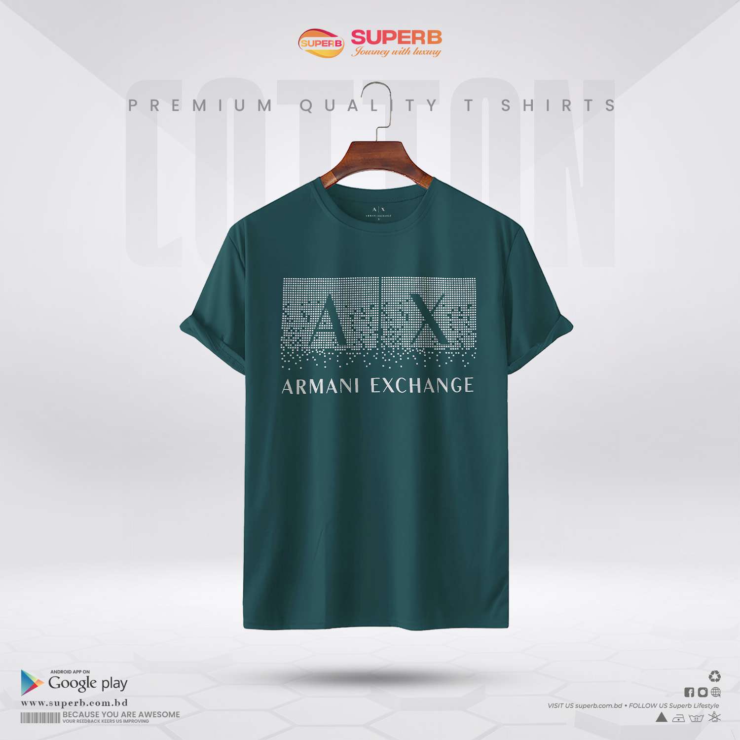 Short Description: A|X Armani Exchange Men's Regular Fit Cotton Crewneck T-Shirt – Featuring a gradient dotted A|X icon logo with a written logo underneath, this stylish and comfortable tee is made from a soft 95% cotton, 5% elastane blend. Designed with a crew neck and short sleeves, it's perfect for everyday wear. Available in Navy Blue, Olive, Deep Sea Green, Black and White.