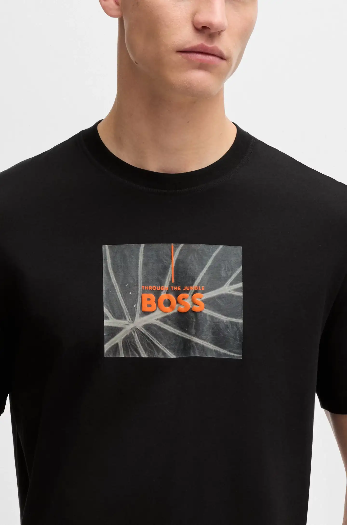 Short Description: Soft 100% cotton BOSS t-shirt with a crew neck, regular fit, and distinctive seasonal artwork.