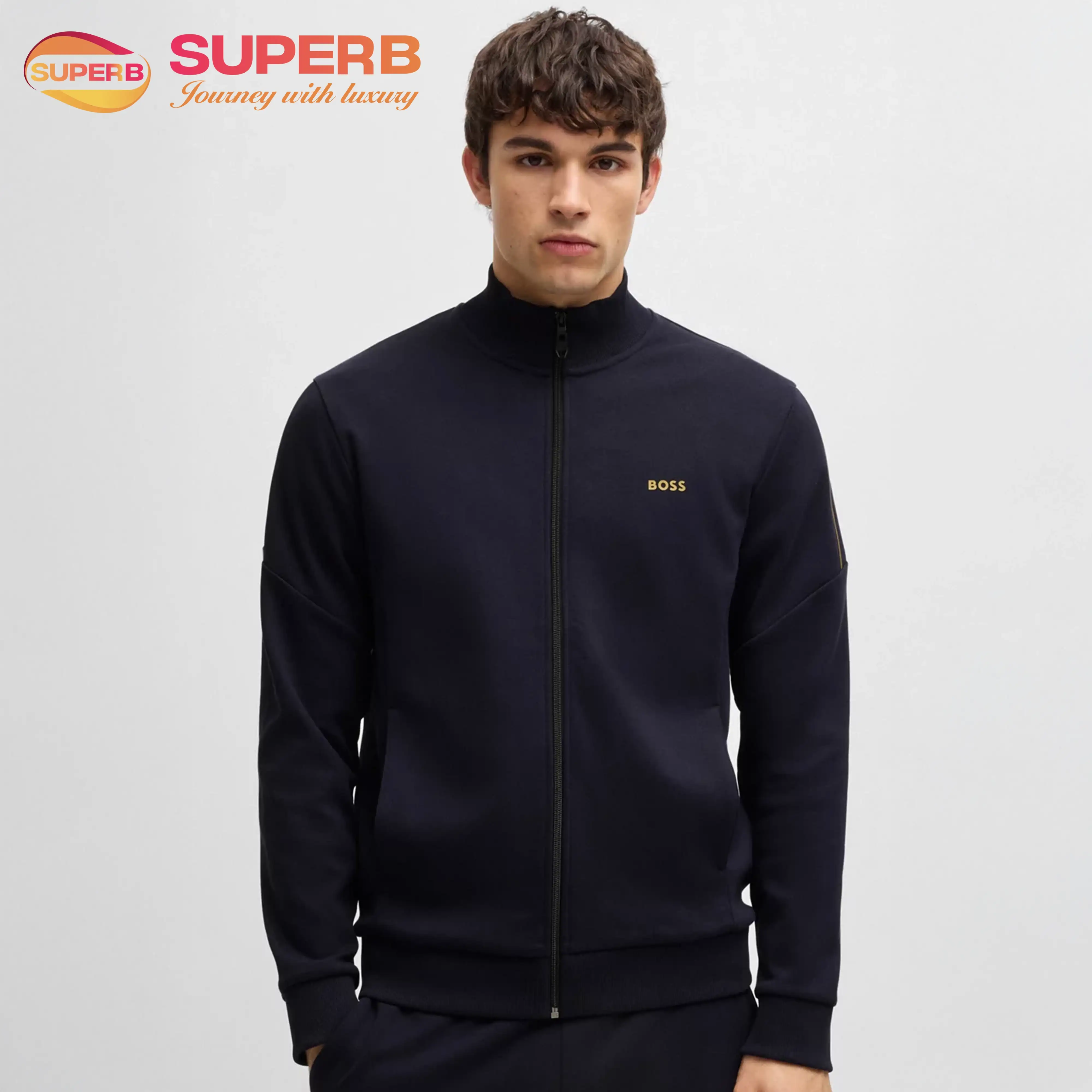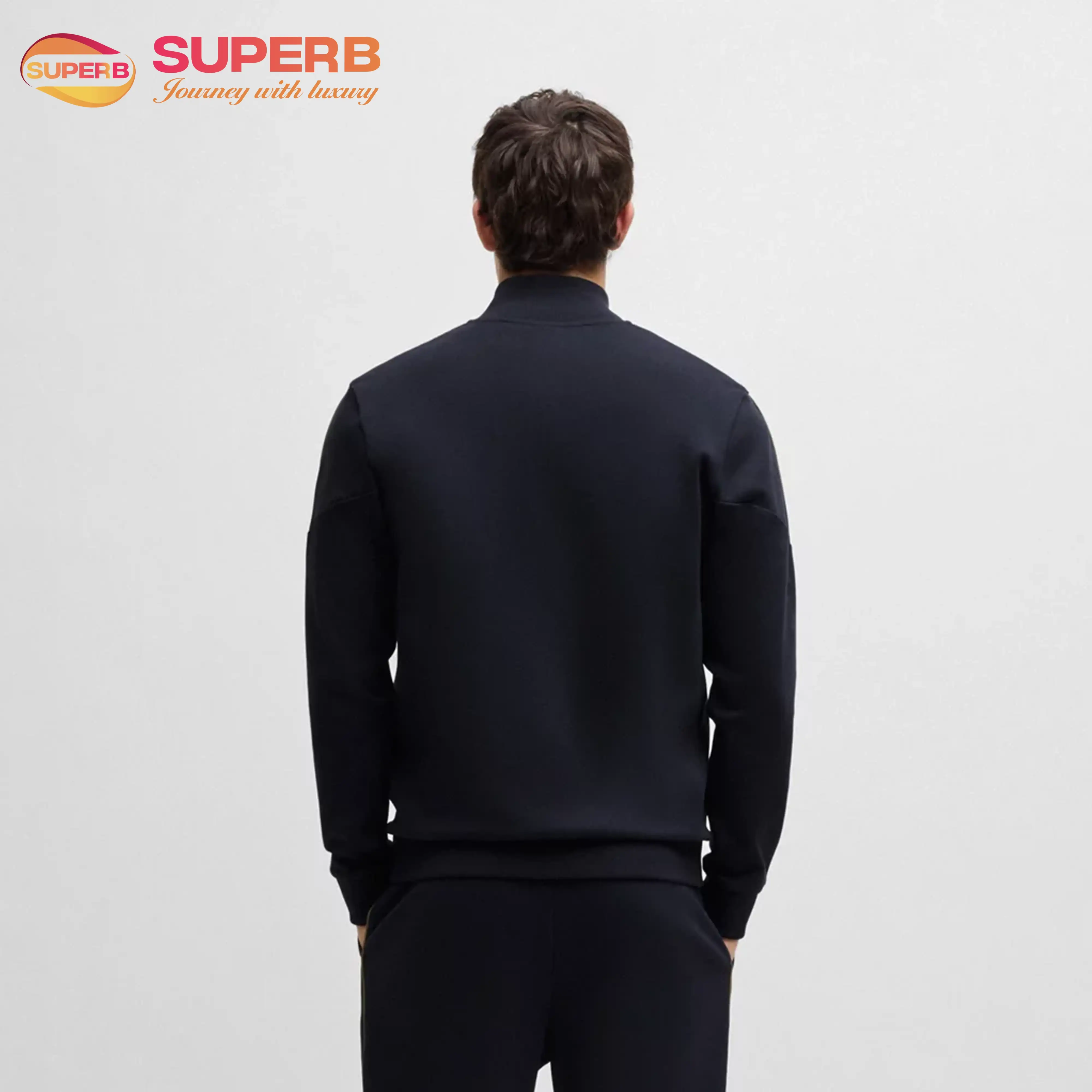 Upgrade your casual wardrobe with this men’s sweatshirt from BOSS Menswear, offering both timeless style and exceptional comfort. Designed with a regular fit, it features a stand collar, long sleeves with flat-knit cuffs, and a full front zip for easy wear and a sleek finish.