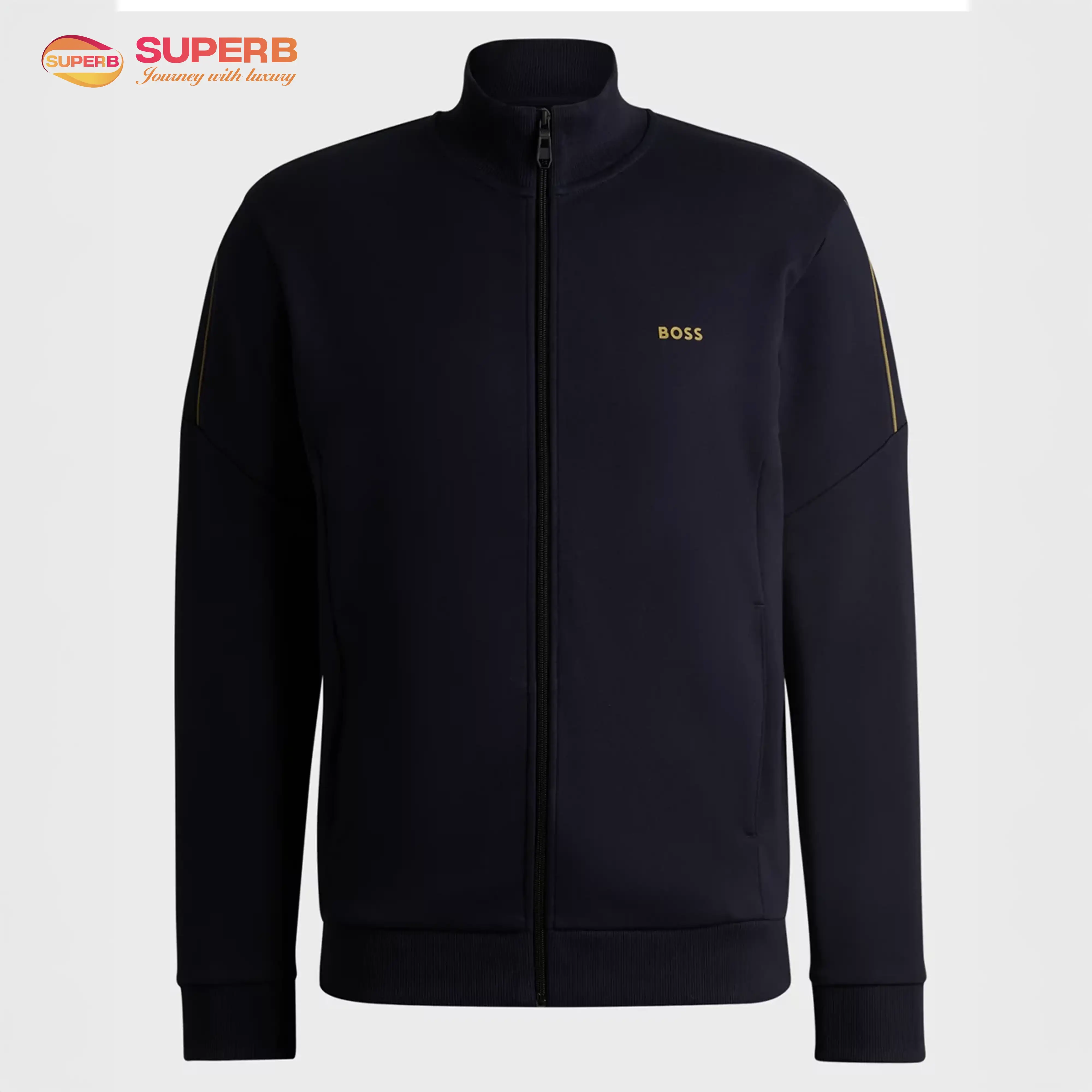 Crafted from 100% double-knit cotton, the fabric provides a soft touch and natural stretch for all-day comfort. The BOSS logo subtly embroidered on the left chest adds a touch of premium branding to this wardrobe essential. Its dark blue color is refined and versatile—ideal for layering over tees or under jackets.