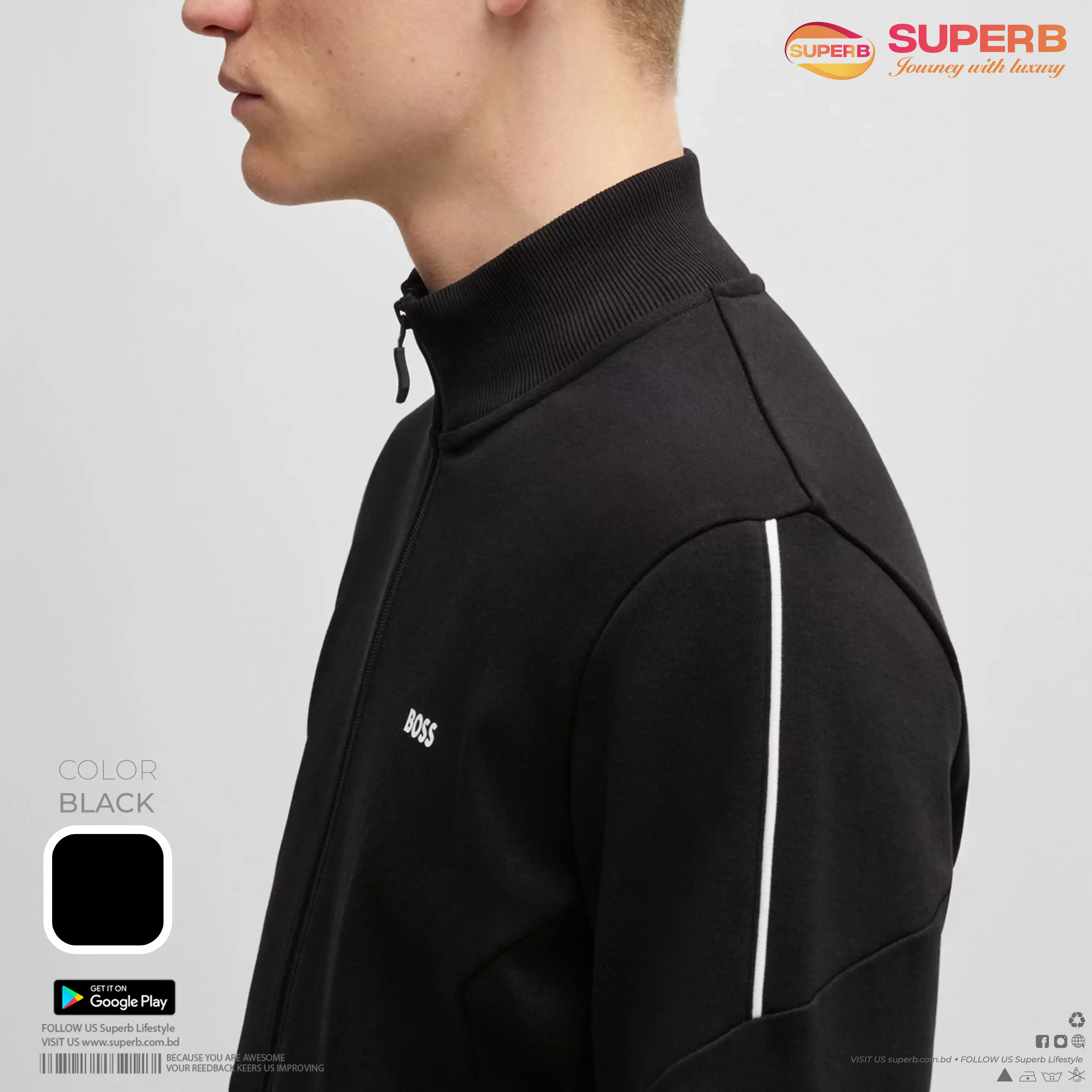 Crafted from 100% double-knit cotton, the fabric provides a soft touch and natural stretch for all-day comfort. The BOSS logo subtly embroidered on the left chest adds a touch of premium branding to this wardrobe essential. Its Black is refined and versatile—ideal for layering over tees or under jackets.