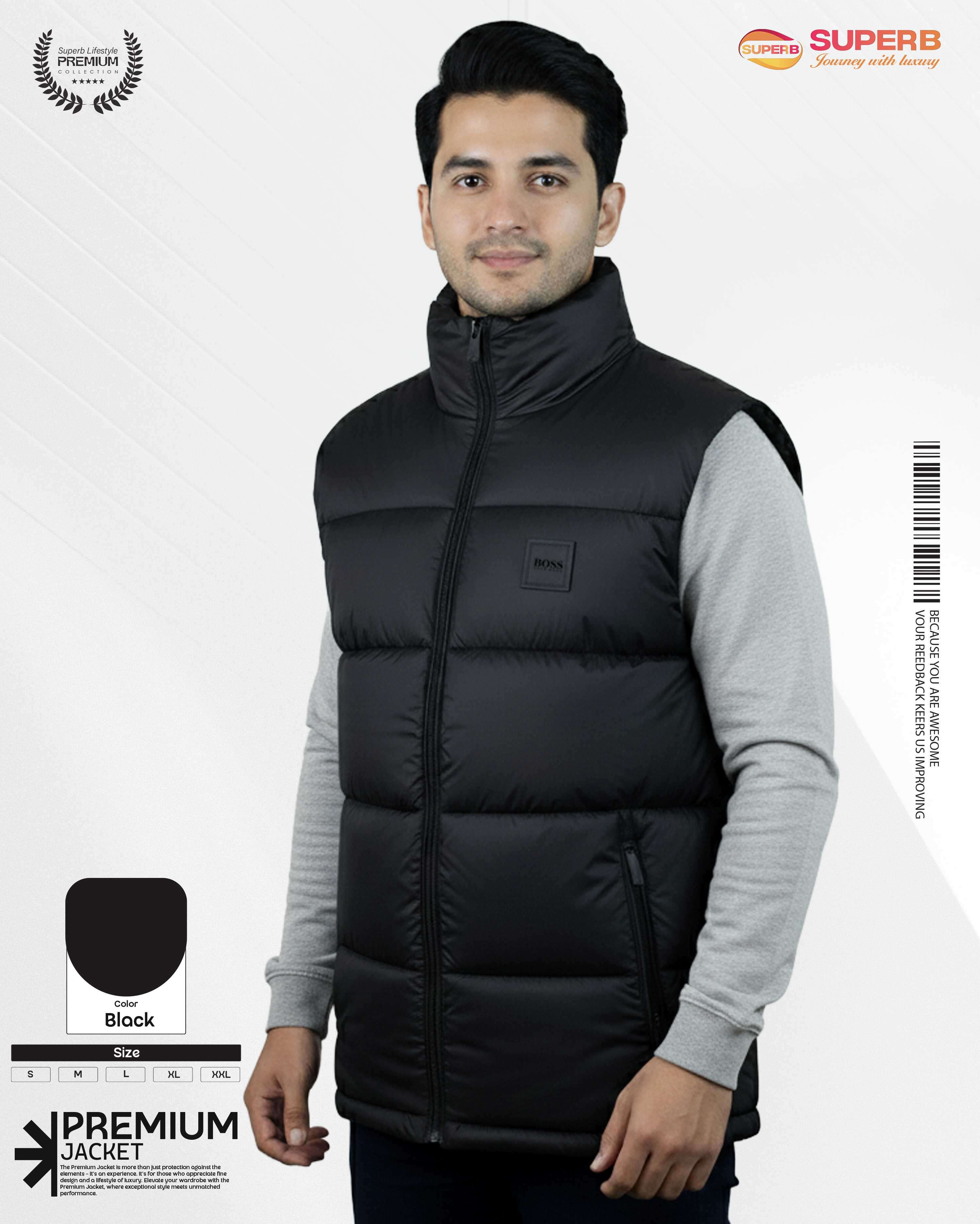 Short Description: Stay warm and stylish without the bulk! The BOSS Premium Sleeveless Puffer Jacket combines modern design with premium insulation — perfect for layering in chilly weather. Made from durable polyester fabric, it offers a sleek look, lightweight comfort, and superior warmth. Ideal for men and women who love effortless winter fashion.