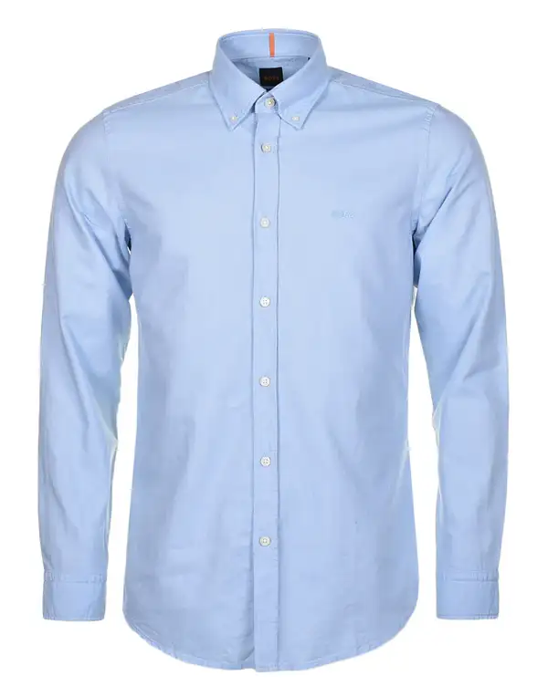 Short Description: Regular fit, long-sleeved BOSS Rickert shirt in 'Light Blue' crafted from sustainable organic cotton with a button-down collar and tonal logo.