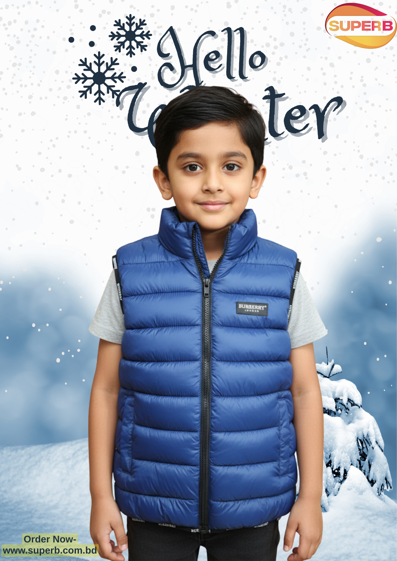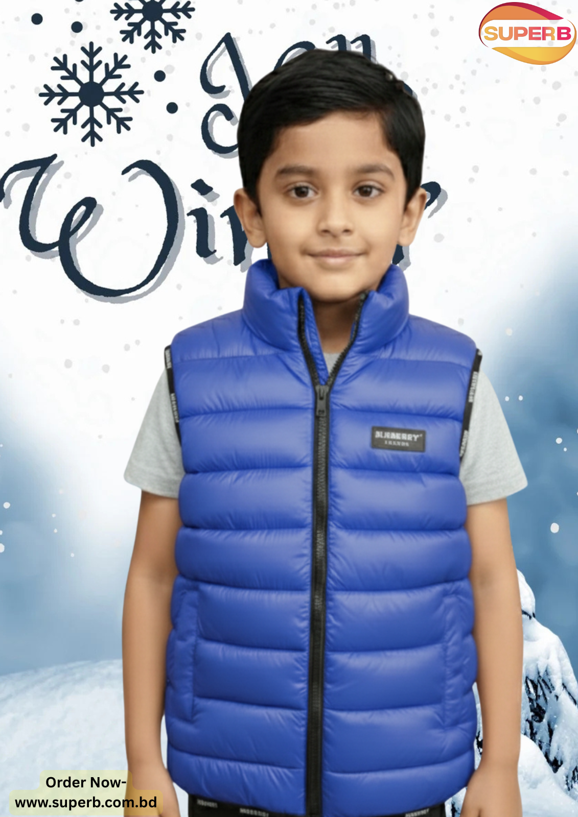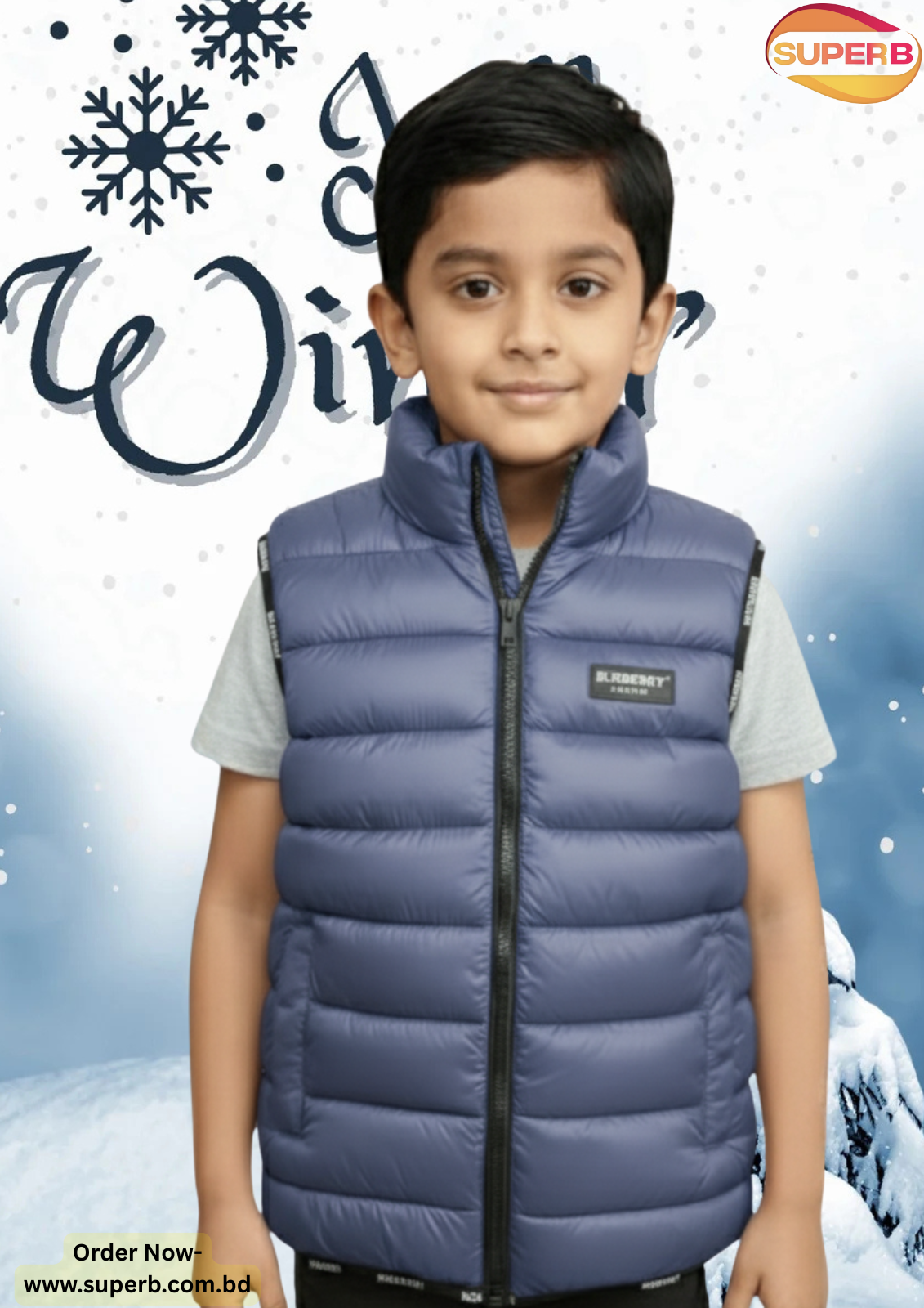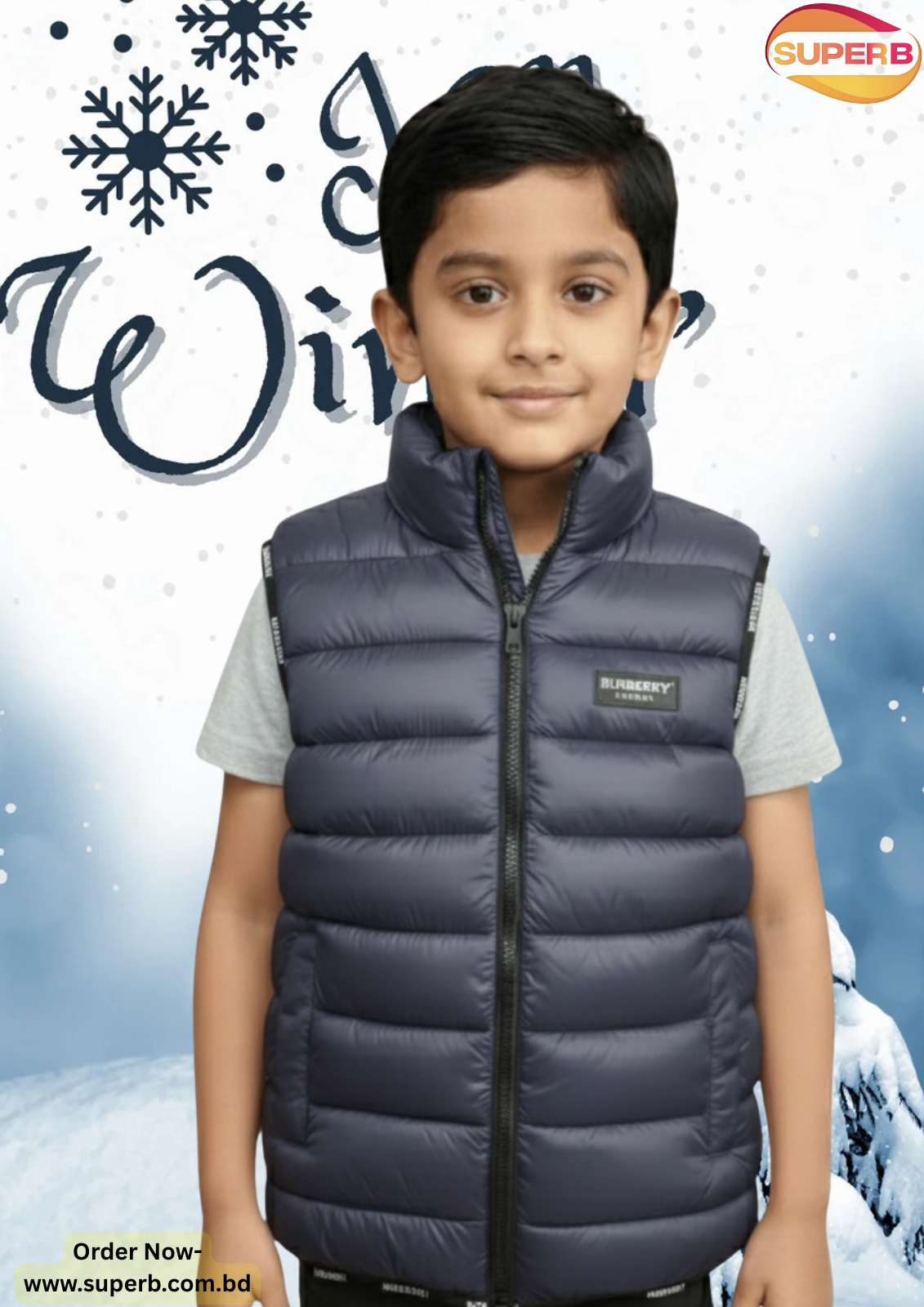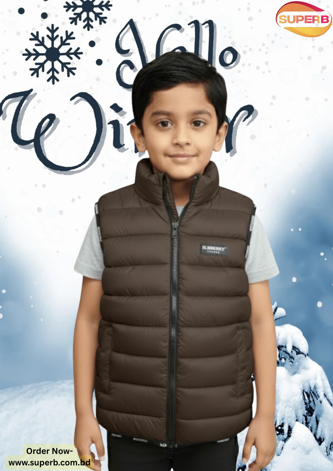 Short Description: Keep your little one cozy and stylish with this Burberry-inspired puffer vest. Made from durable polyester, it's perfect for layering over a long-sleeve shirt or hoodie on chilly days. Available in classic Navy Blue, Maroon, Black, Light Blue , Light Pink , Red , Bronze , Khaki , Petrol , Chocolate , Dark Olive , Light Black , Olive Light Maroon And Light Navy.