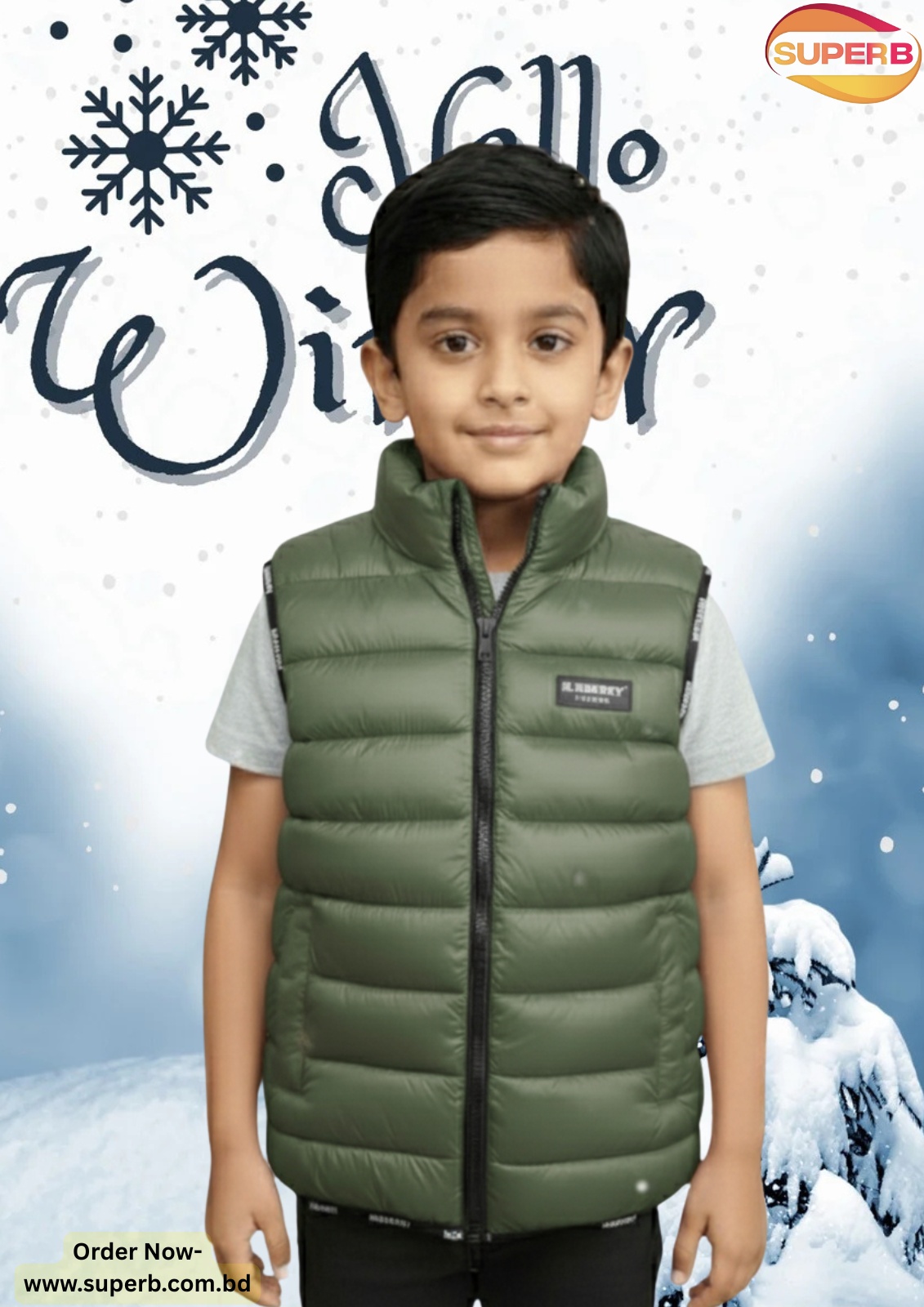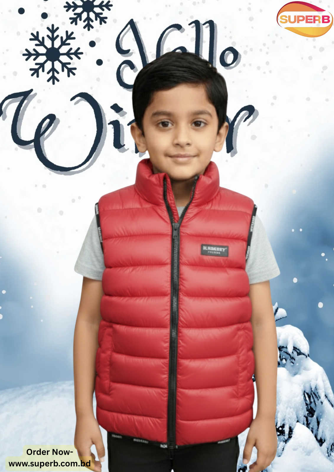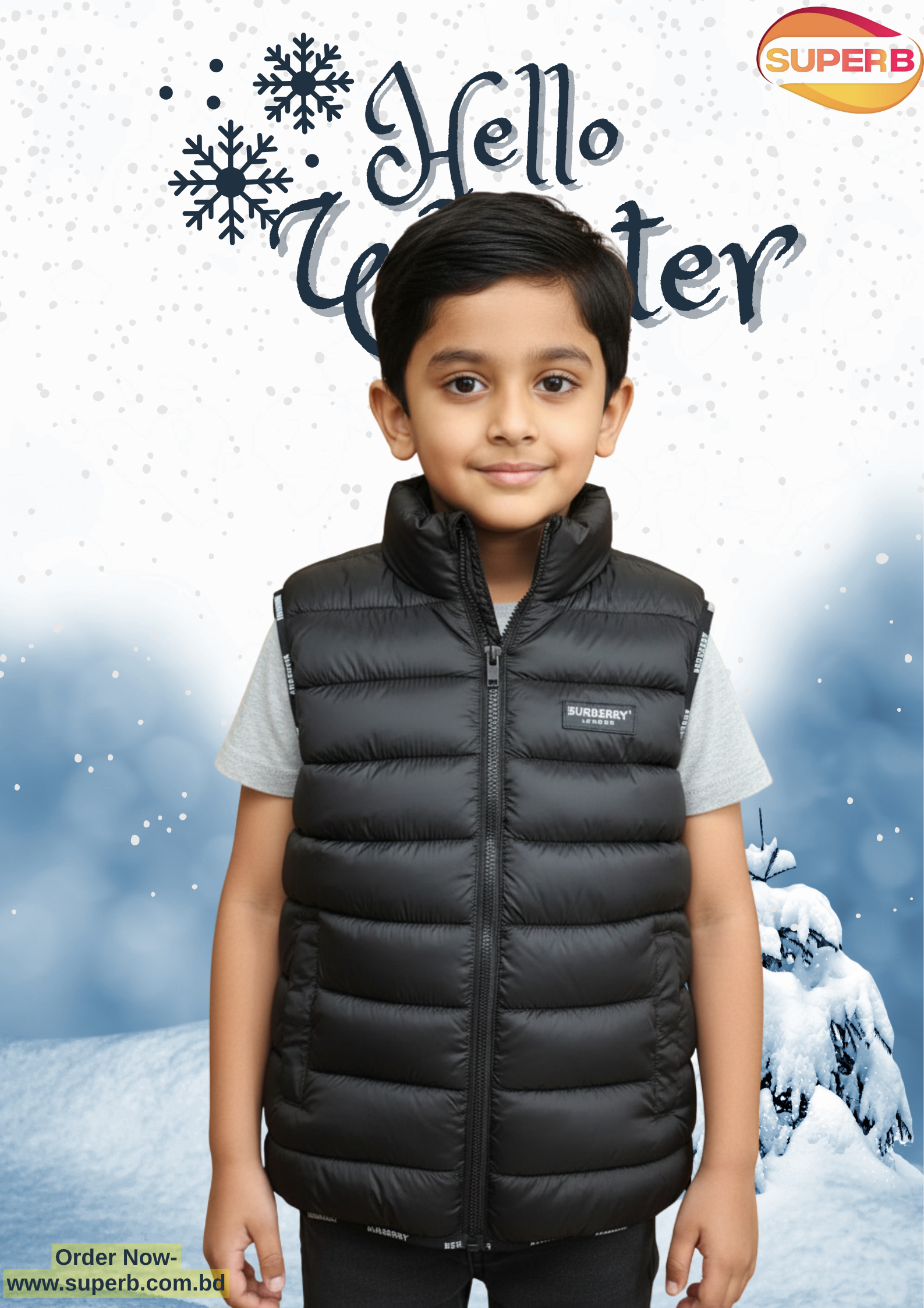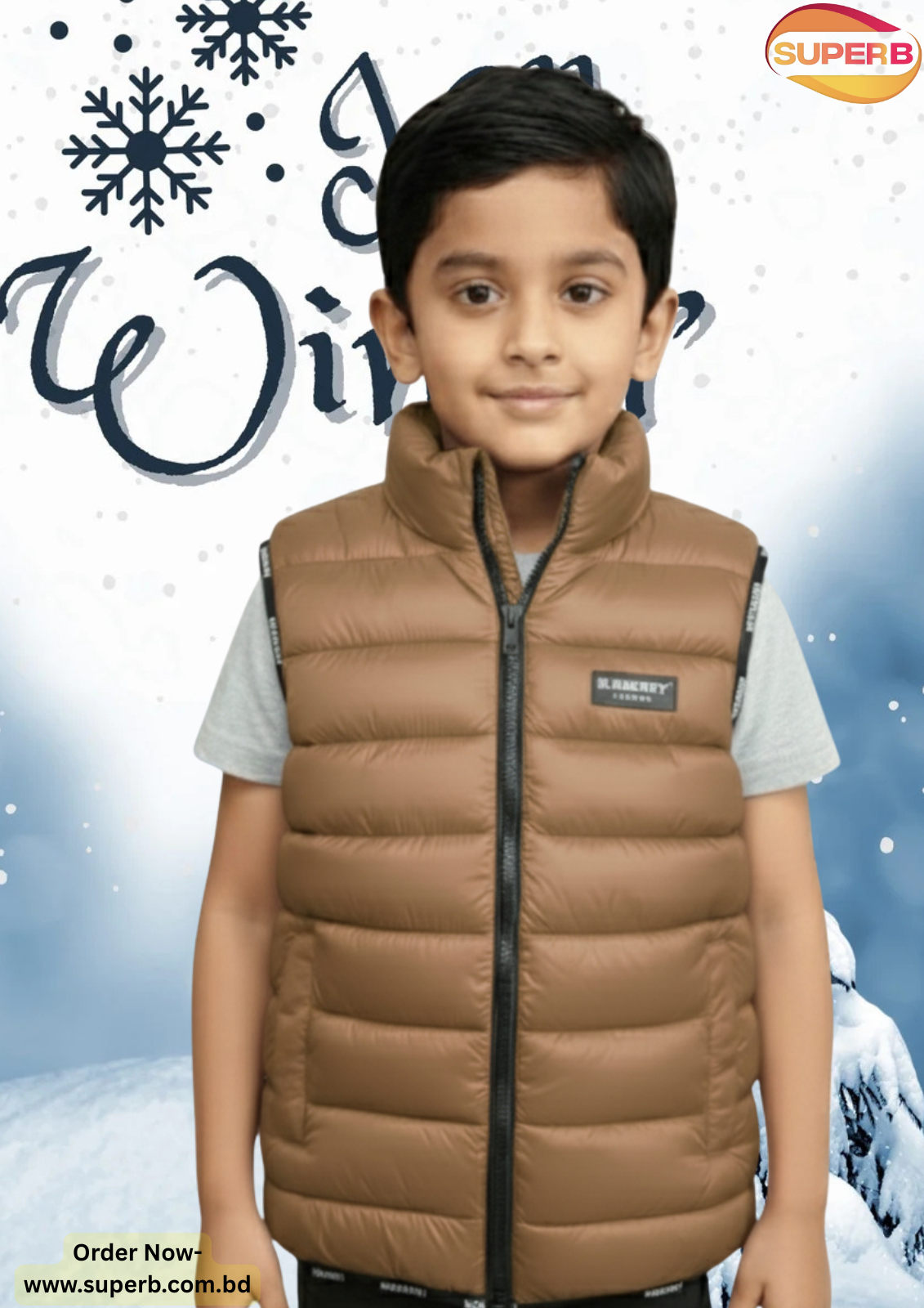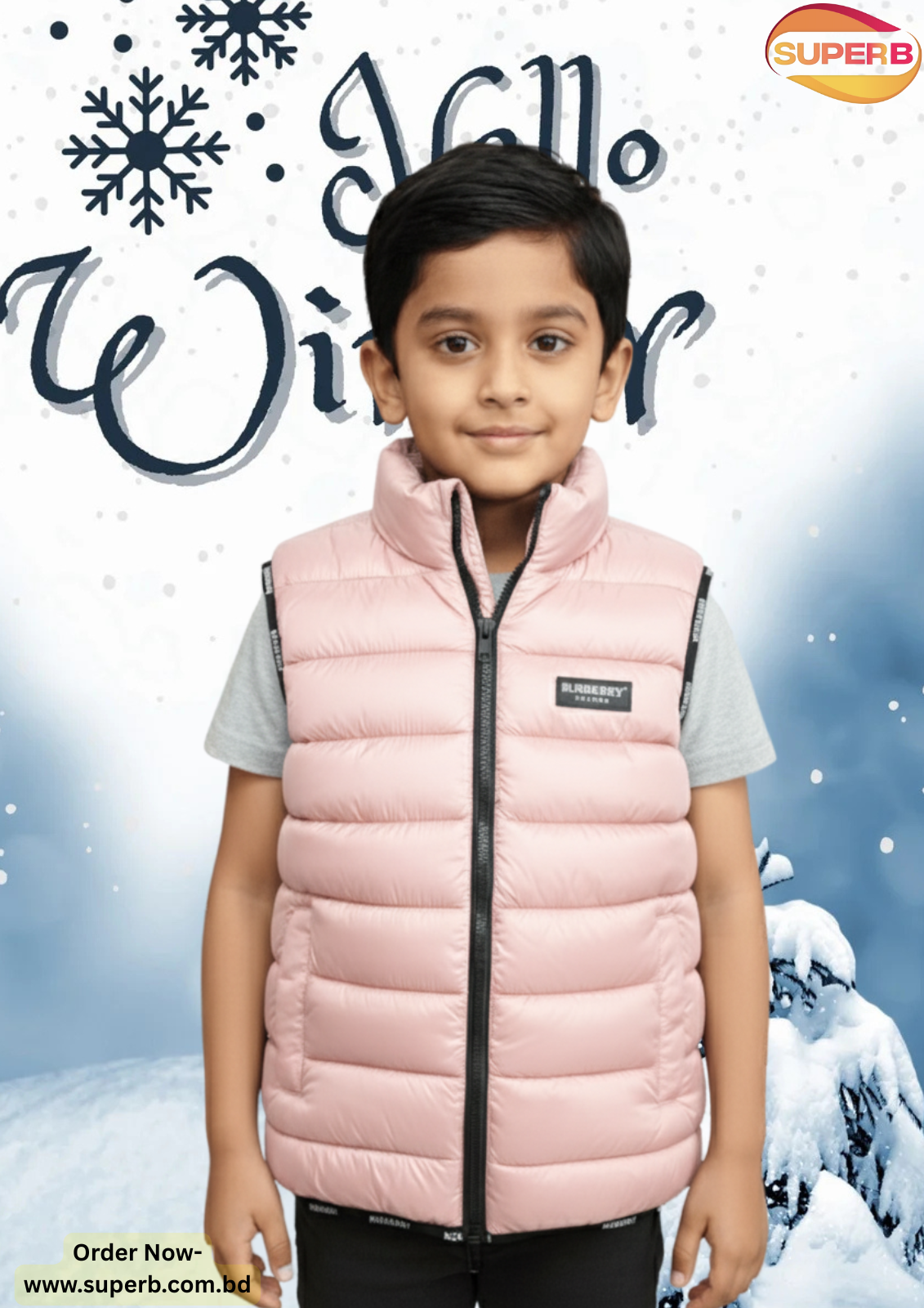 Short Description: Keep your little one cozy and stylish with this Burberry-inspired puffer vest. Made from durable polyester, it's perfect for layering over a long-sleeve shirt or hoodie on chilly days. Available in classic Navy Blue, Maroon, Black, Light Blue , Light Pink , Red , Bronze , Khaki , Petrol , Chocolate , Dark Olive , Light Black , Olive Light Maroon And Light Navy.