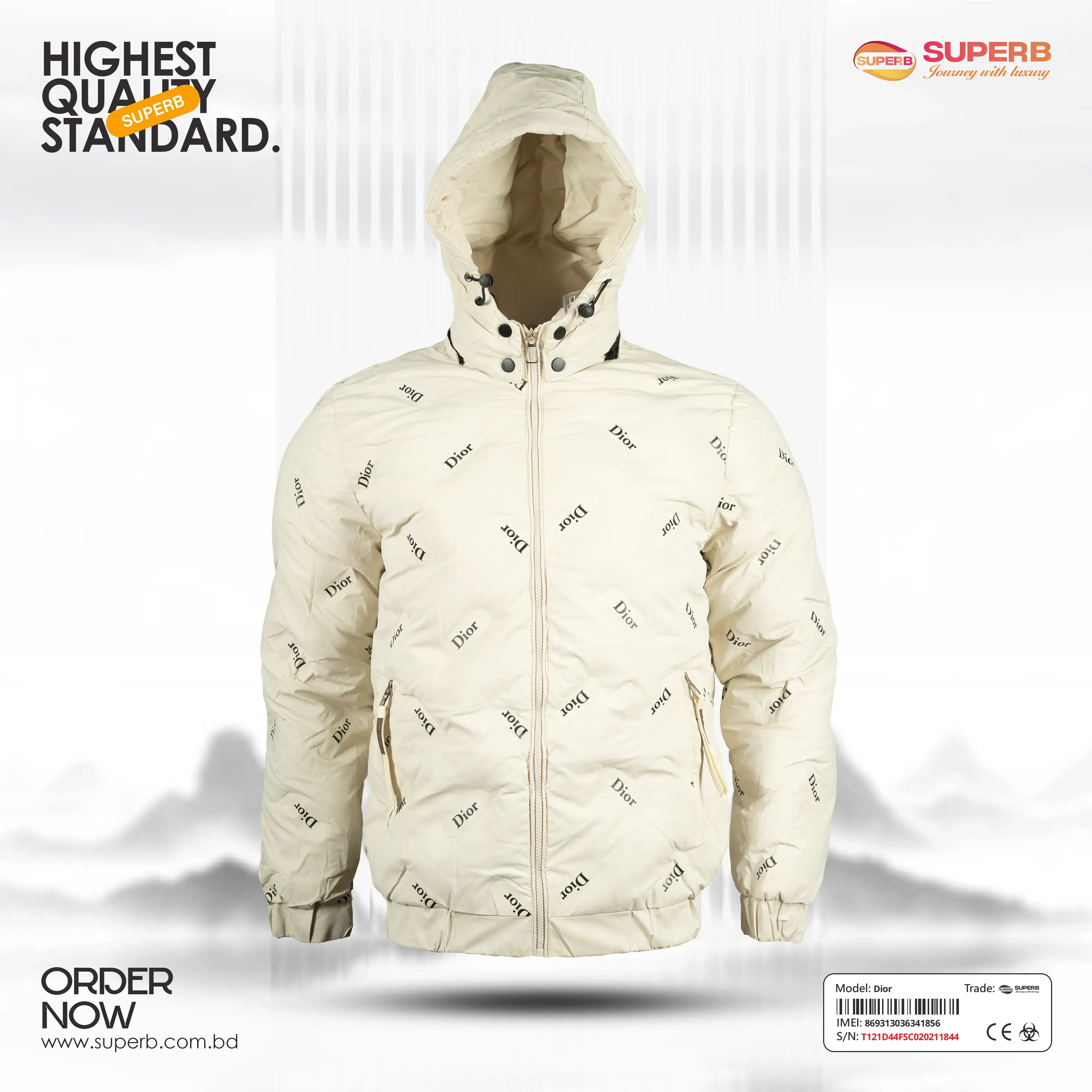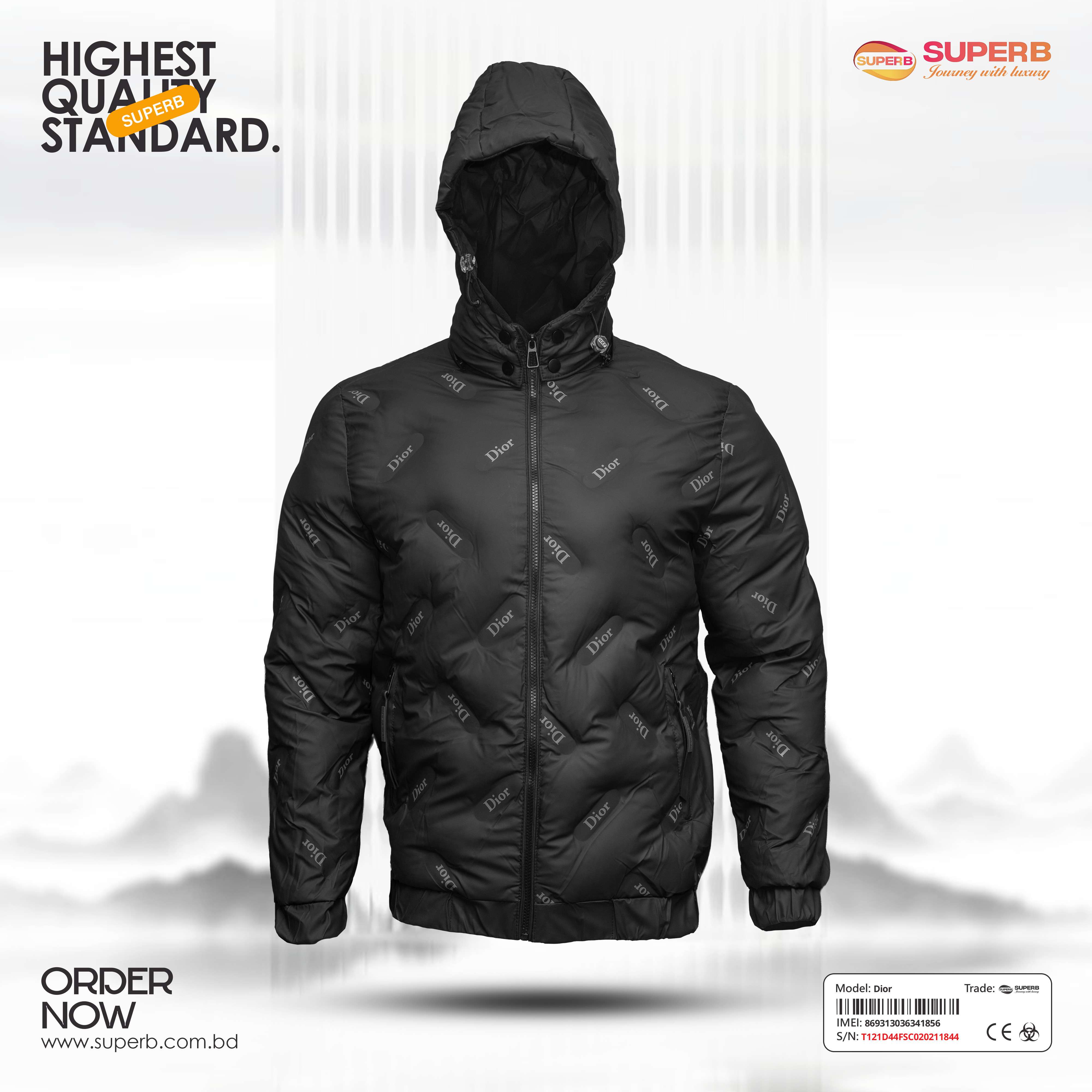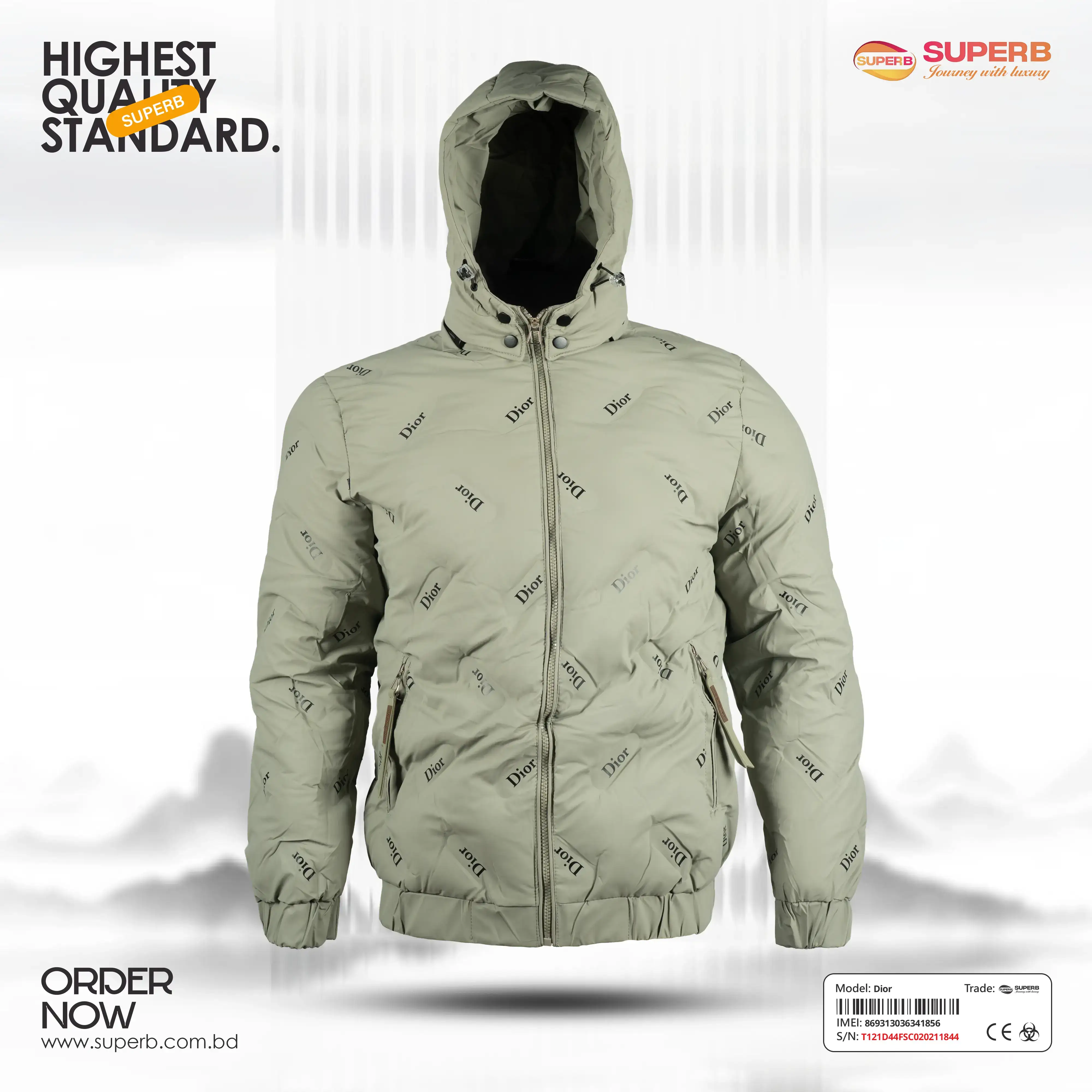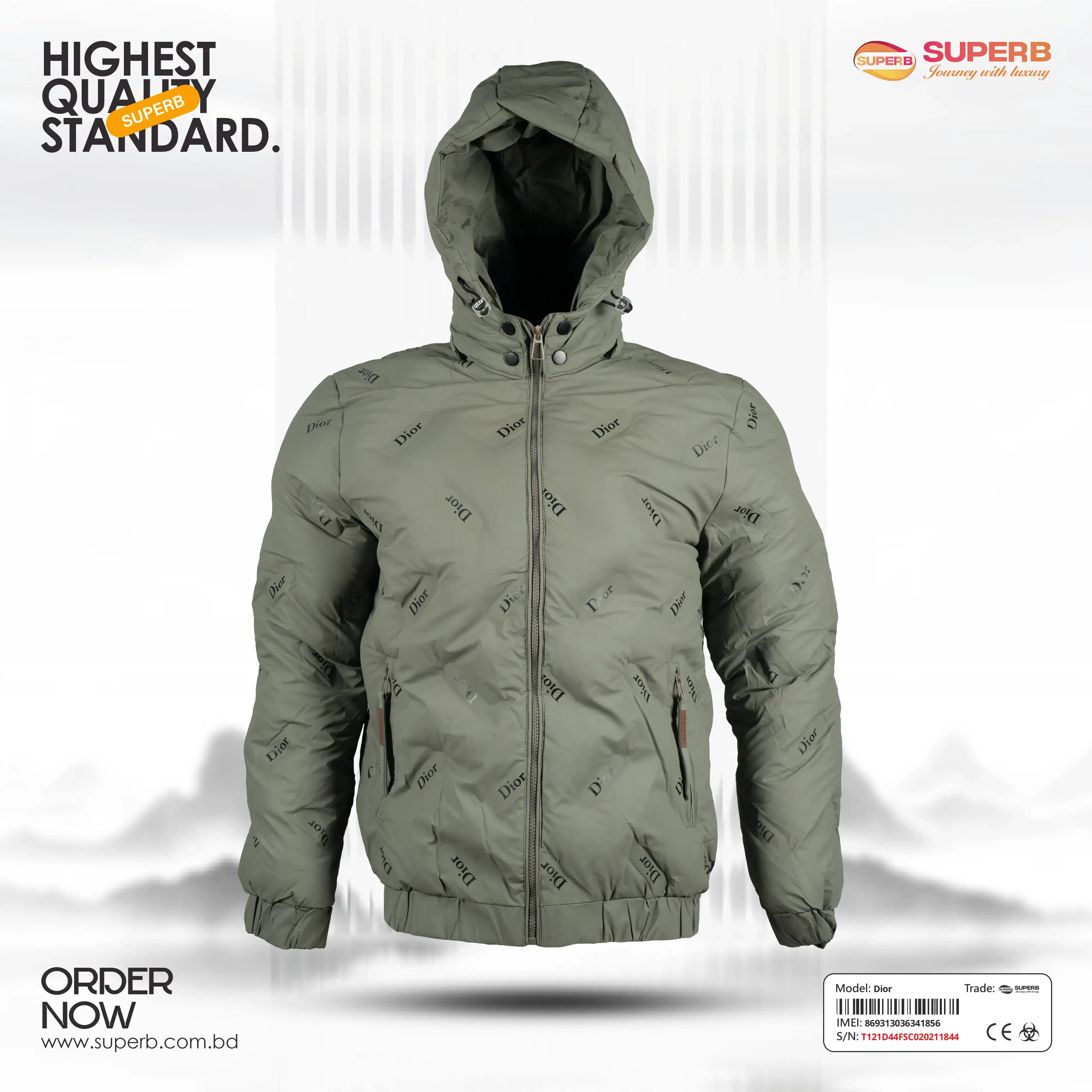 Short Description: Shop the Dior Down Jacket with all-over logo print and hood. A premium, warm winter essential with a modern fit and luxury branding. Available Colors- Black, Mint green ,Off White, Trianon Gray