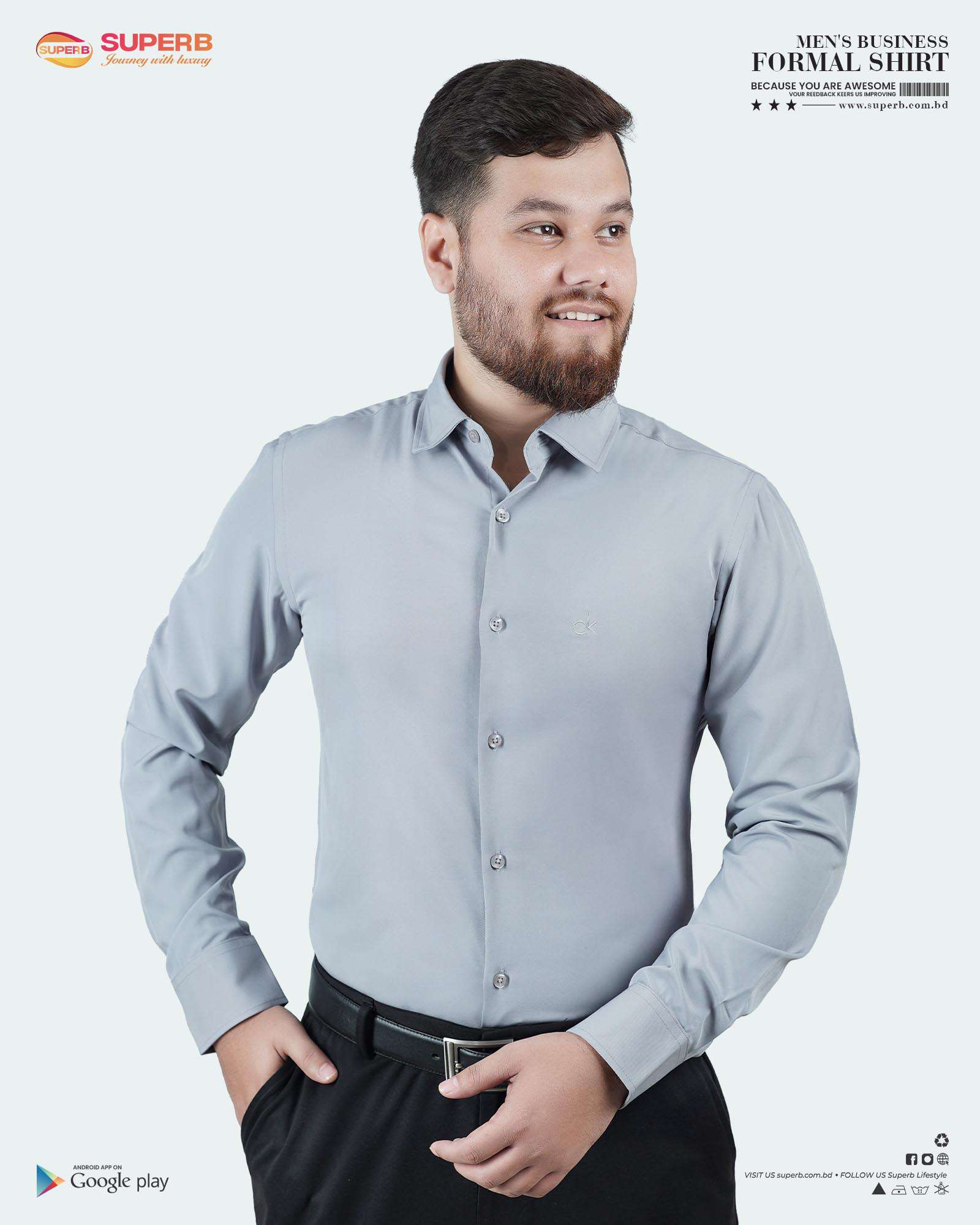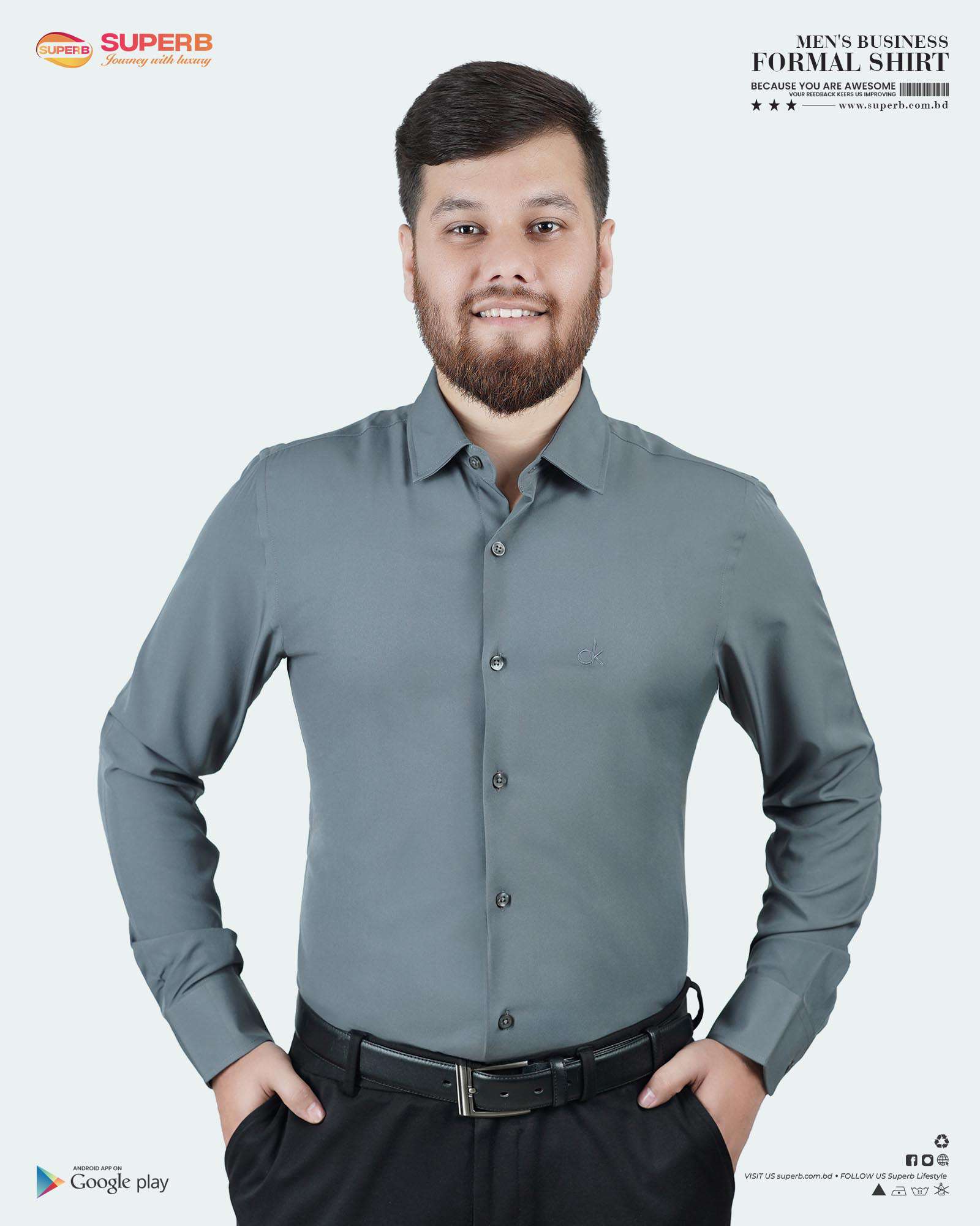 Short Description: Upgrade your formal wardrobe with this CK men's custom-fit business shirt, crafted from a premium blend of 95% cotton and 5% elastane for comfort, flexibility, and a refined look. Designed with a spread collar, French button placket, and a subtle chest logo, it exudes elegance and professionalism. Available in Colors: Black, White, Navy Blue, Maroon, Laurel Green, Steel Gray, Silver, Ash Gray, and Light Gray.