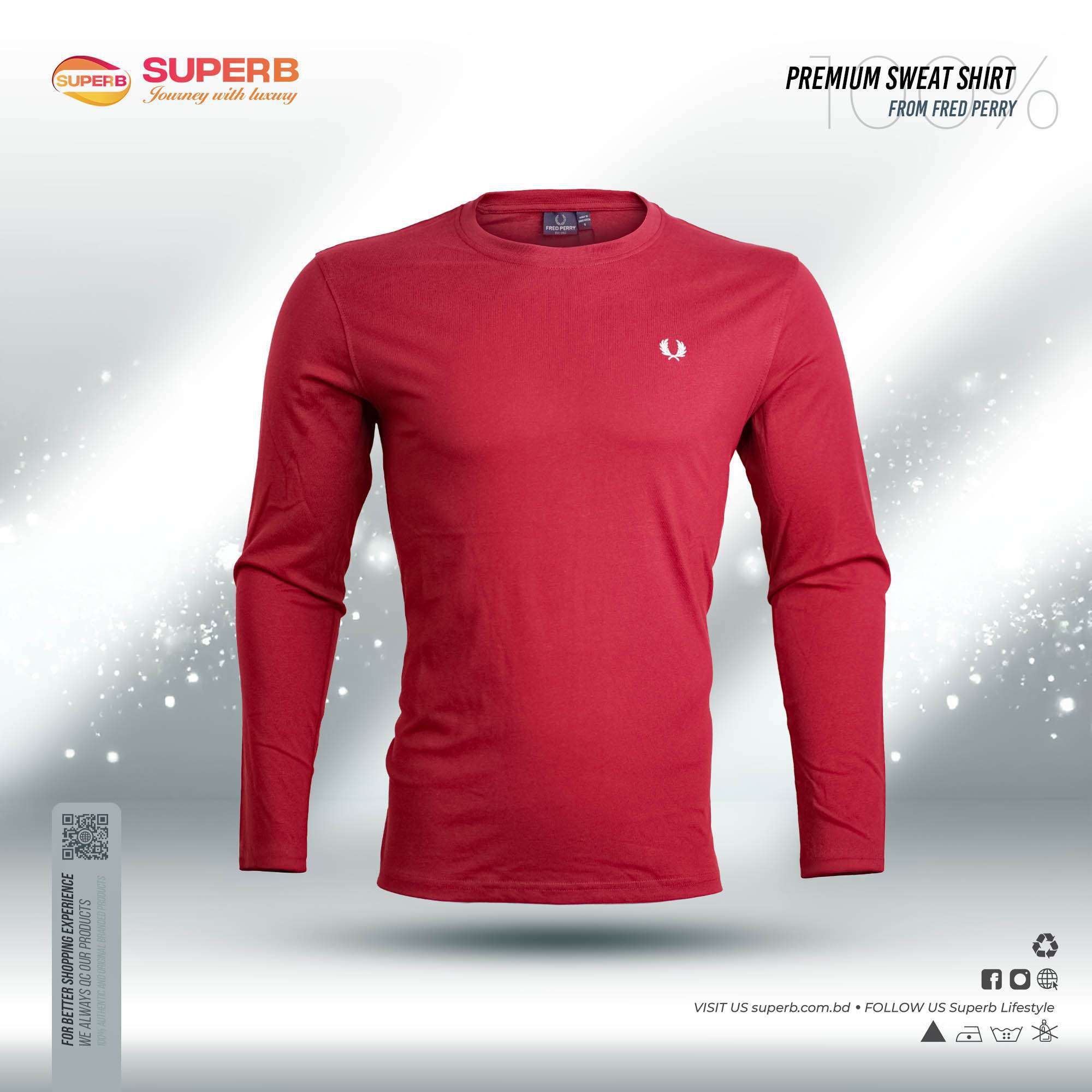 Short Description: Premium Full Sleeve T-Shirt for men from Fred Perry, featuring the iconic Laurel Wreath logo on the chest. Available Colors-Brown, Red, Green
