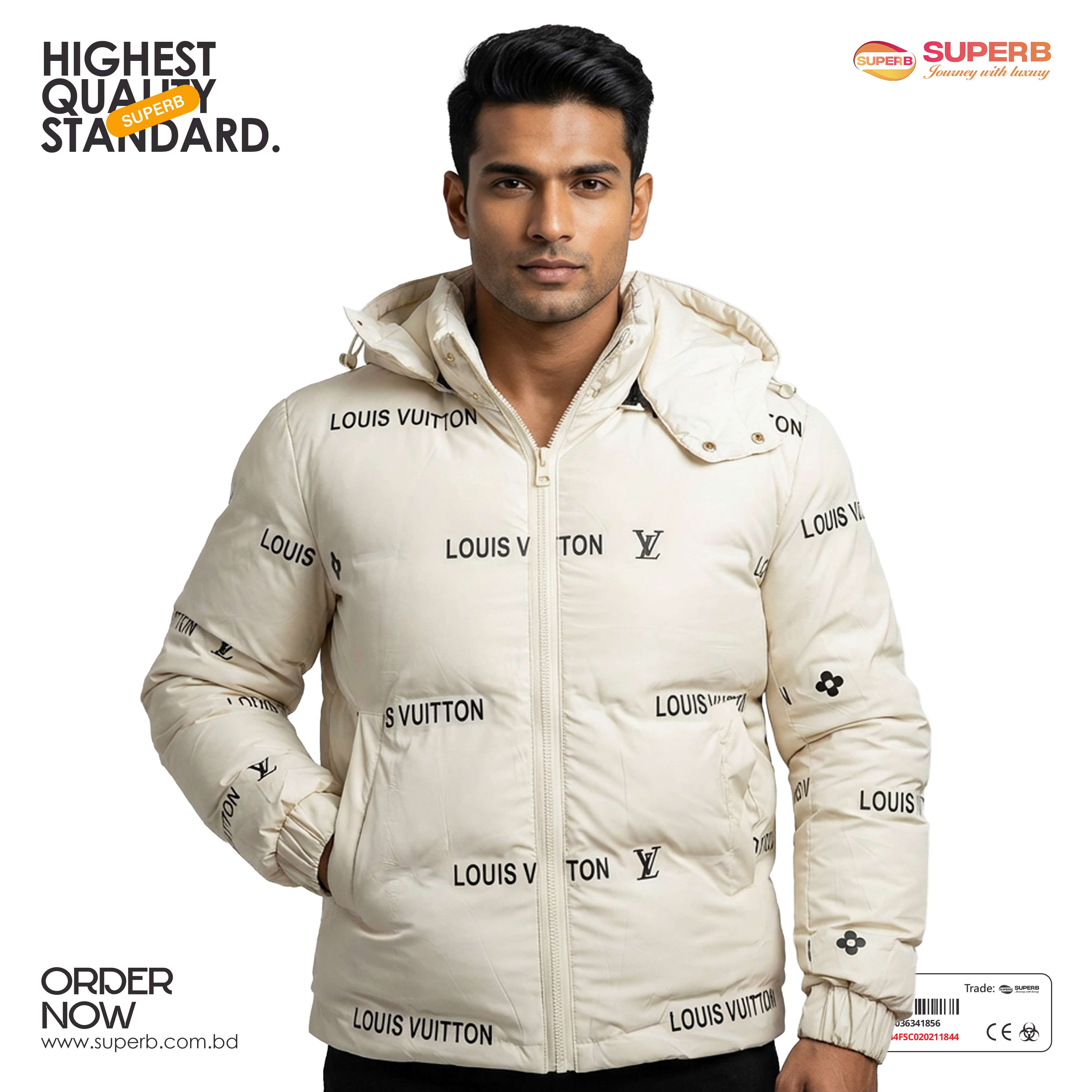 Elevate your outerwear collection with this Louis Vuitton Padded Jacket, a luxurious blend of fashion-forward design and functional warmth. Crafted in a crisp white colorway, the jacket features an all-over "LOUIS VUITTON" and LV monogram print, making a bold statement in high fashion.