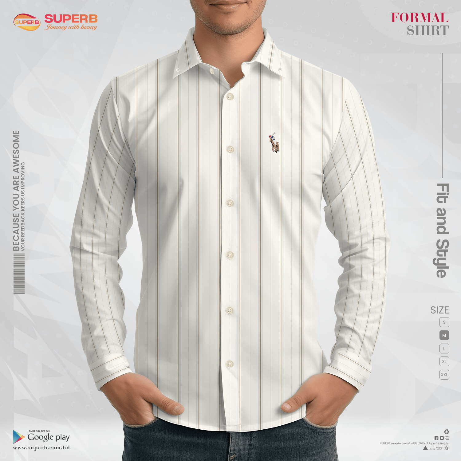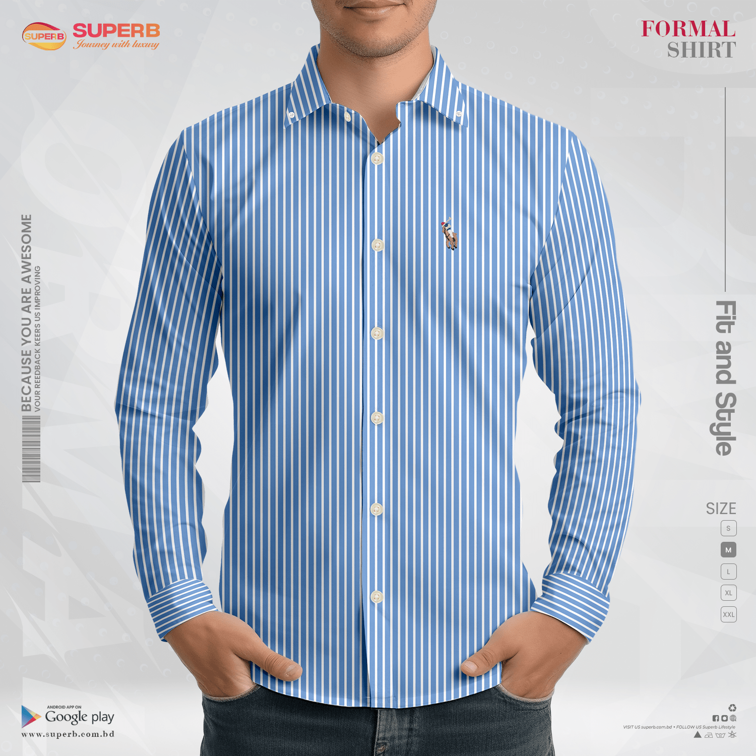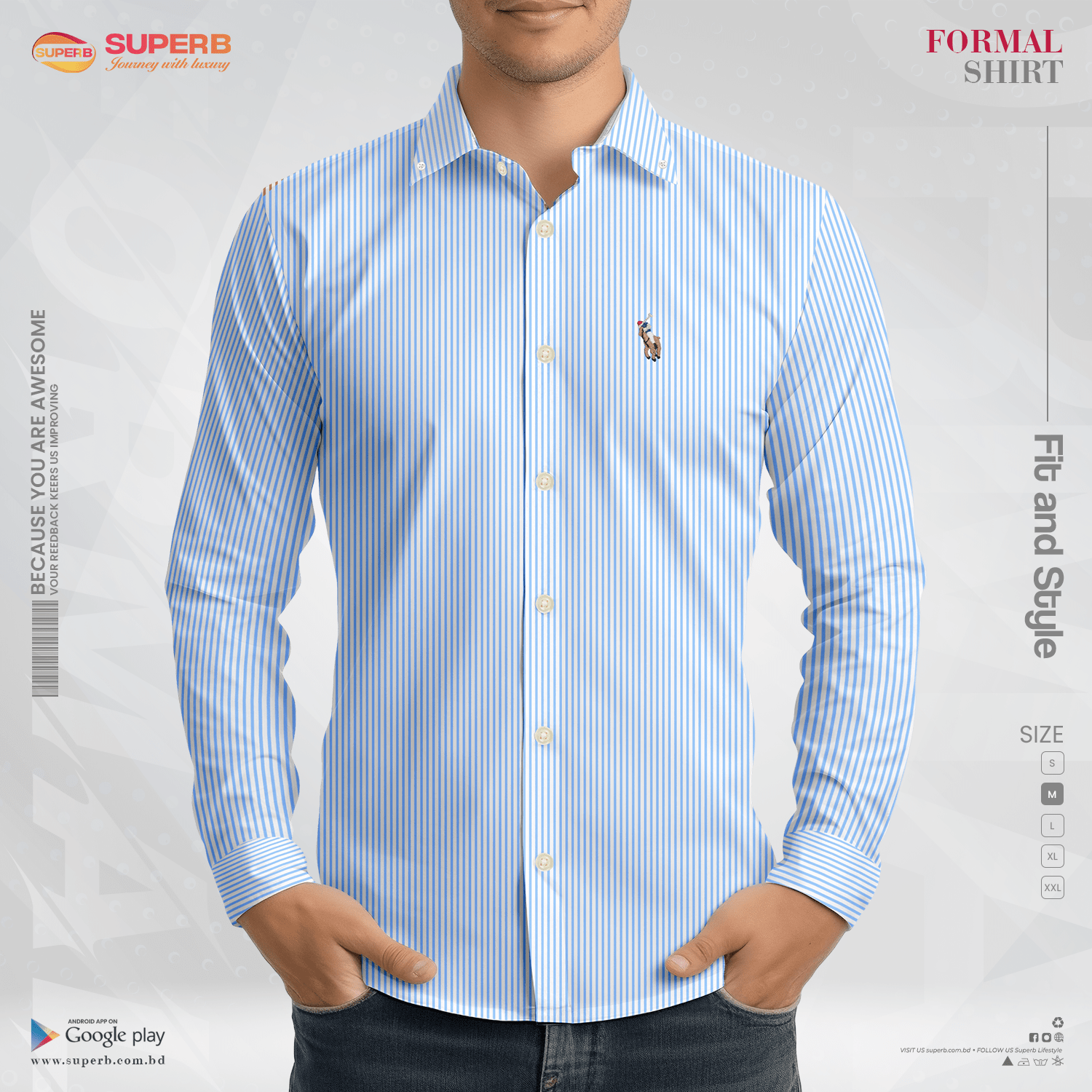 Short Description: Elevate your formal wardrobe with this premium Ralph Lauren-inspired shirt from SUPERB. Designed for ultimate comfort and style, it features a sleek striped pattern, a tailored fit, and a refined look perfect for business and casual occasions.