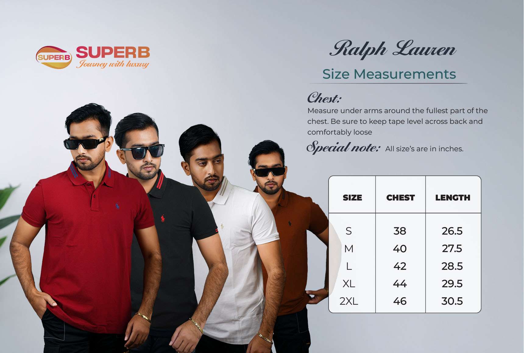 Size S- 38, M- 40, L- 42, XL- 44, XXL- 46