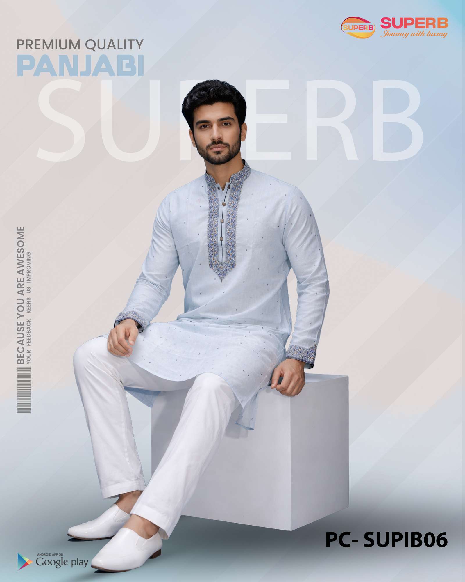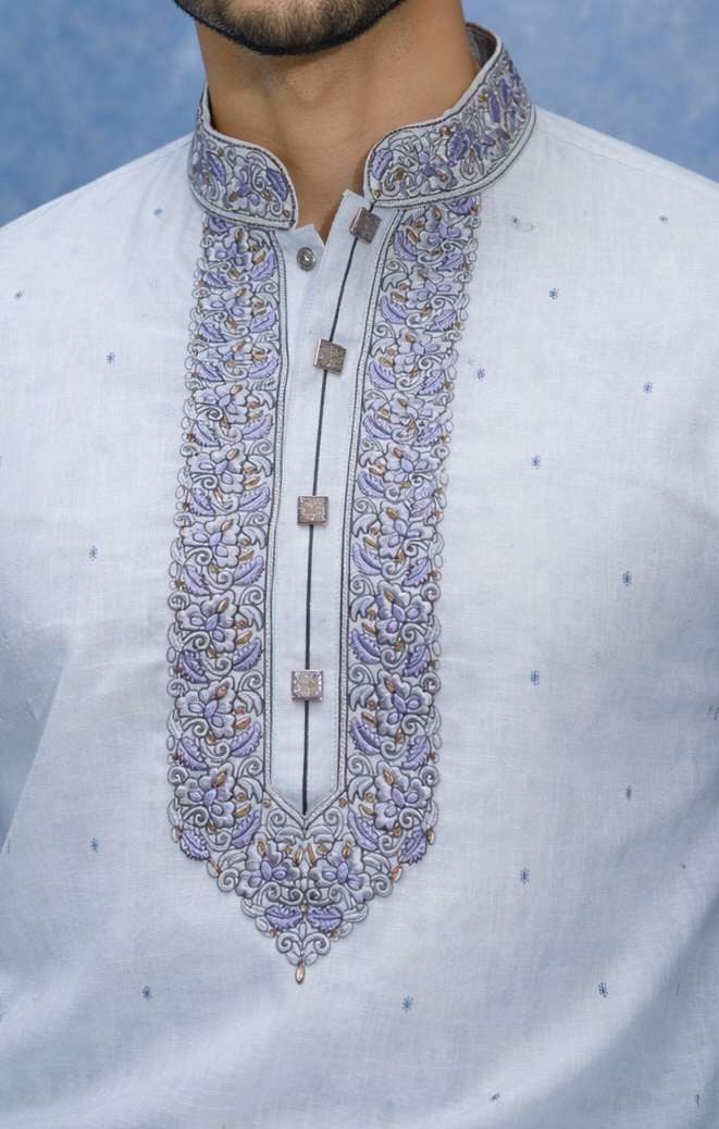 Short Description: Elevate your festive style with this premium light sky blue Brasso Panjabi, crafted with elegant embroidery and refined detailing. Perfect for Eid, weddings, and cultural occasions.