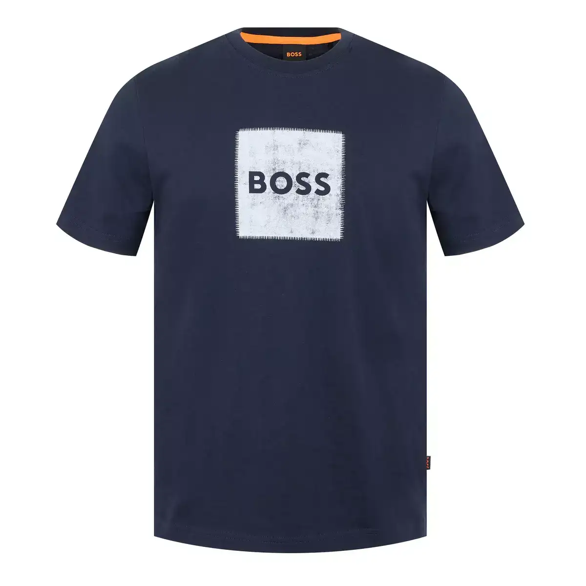 Short Description: Authentic BOSS men's t-shirt in soft 100% cotton with a distinctive logo graphic. Available in Navy Blue, Black, and Off White.