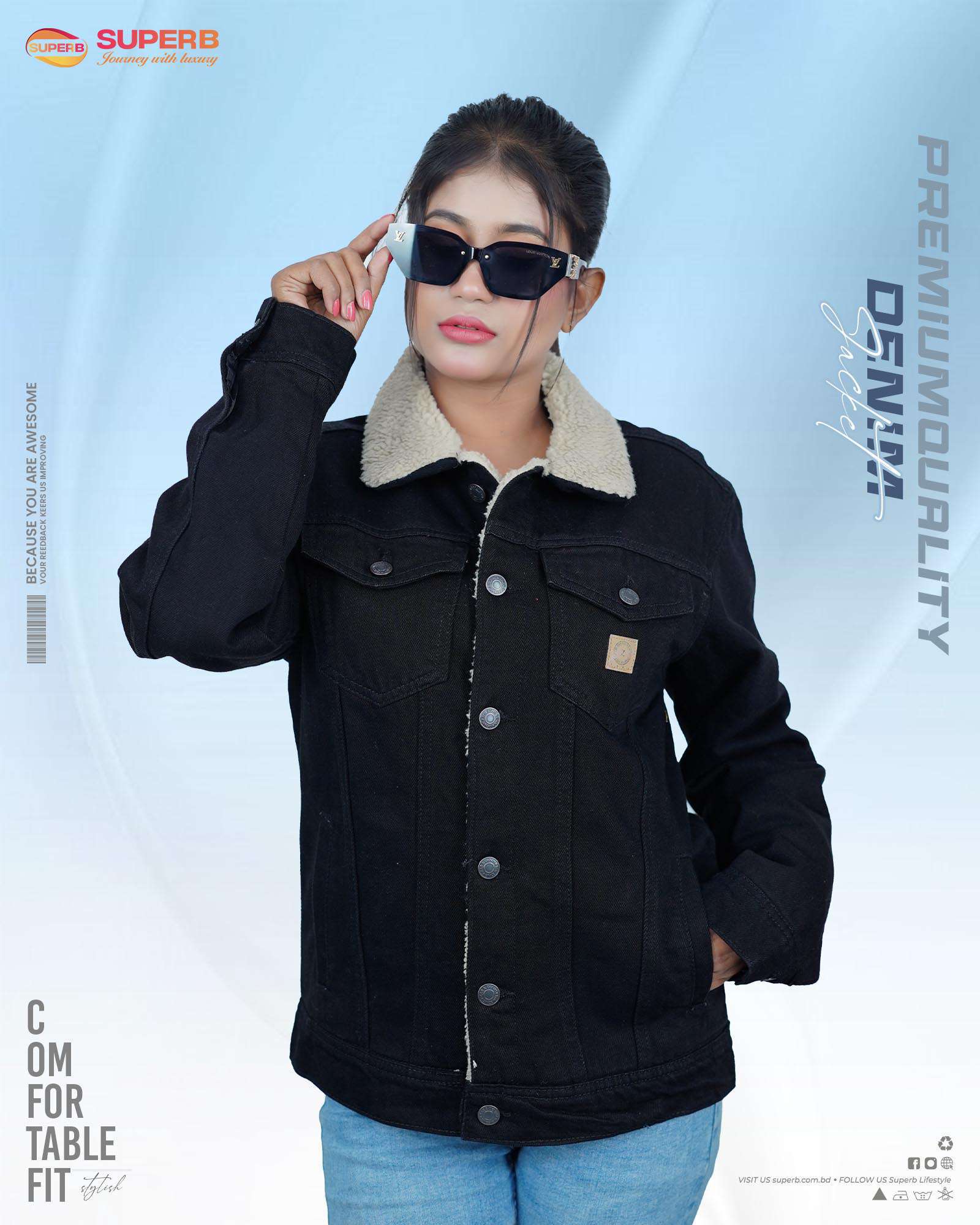 Short Description: Stay stylish with our premium denim jacket featuring a sherpa collar and durable denim construction. Perfect for versatile, everyday wear, this jacket is available in classic black and blue color options. Shop now at superb.com.bd!
