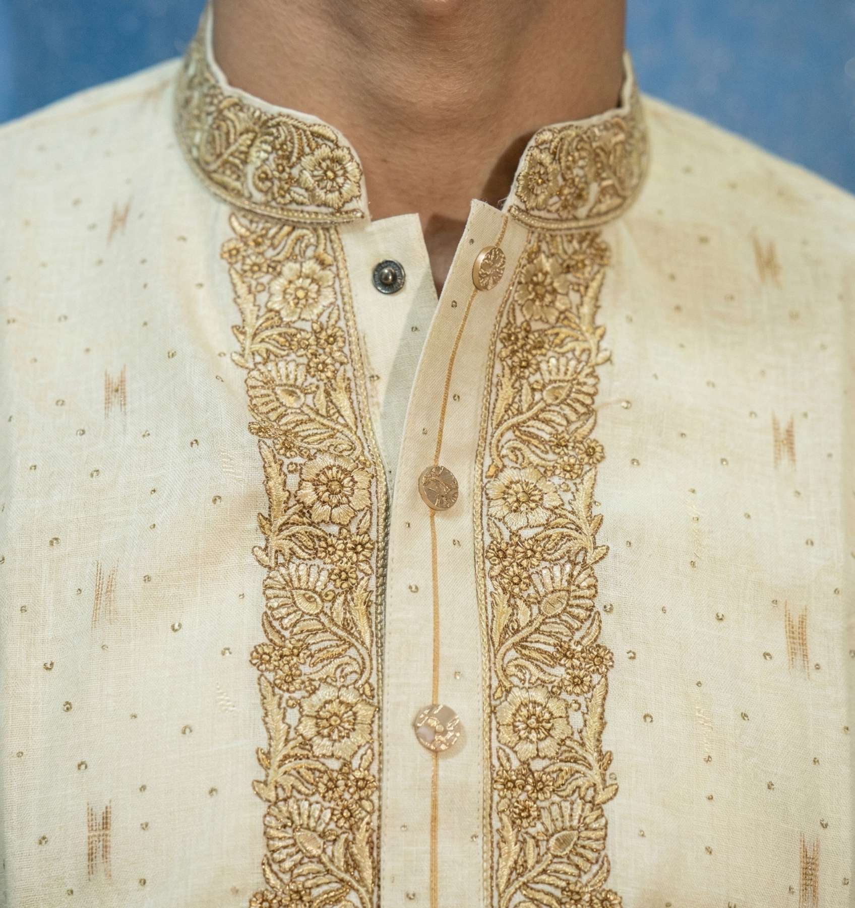Short Description: Elevate your ethnic style with this premium beige Indian Brasso Panjabi featuring elegant embroidery and a refined finish. Crafted for comfort and sophistication, it’s perfect for festivals, weddings, and special occasions.