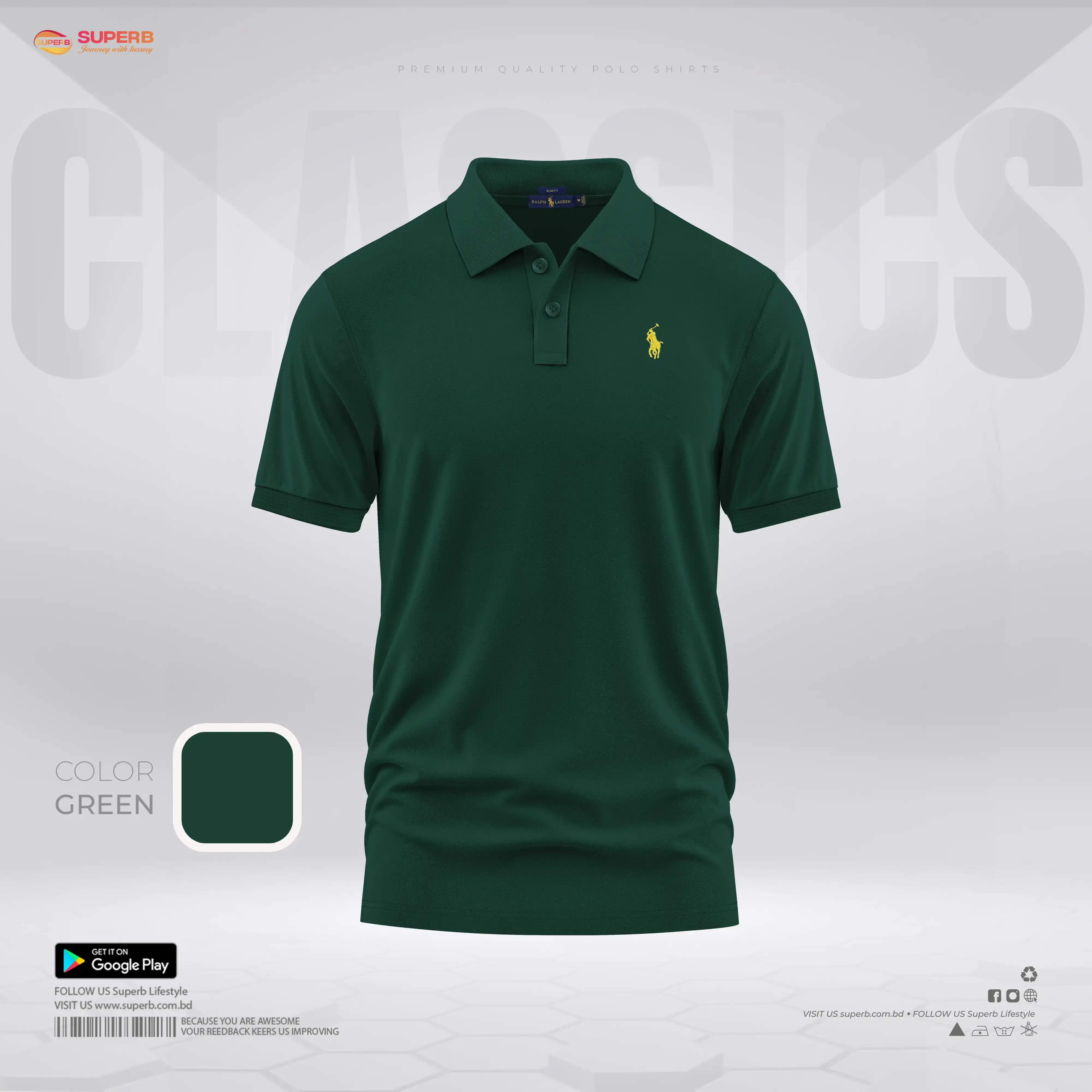Short Description: Premium quality short-sleeved polo shirt from Ralph Lauren featuring the iconic Polo Player logo. Available Color- Black, White , Green and Brick Red.