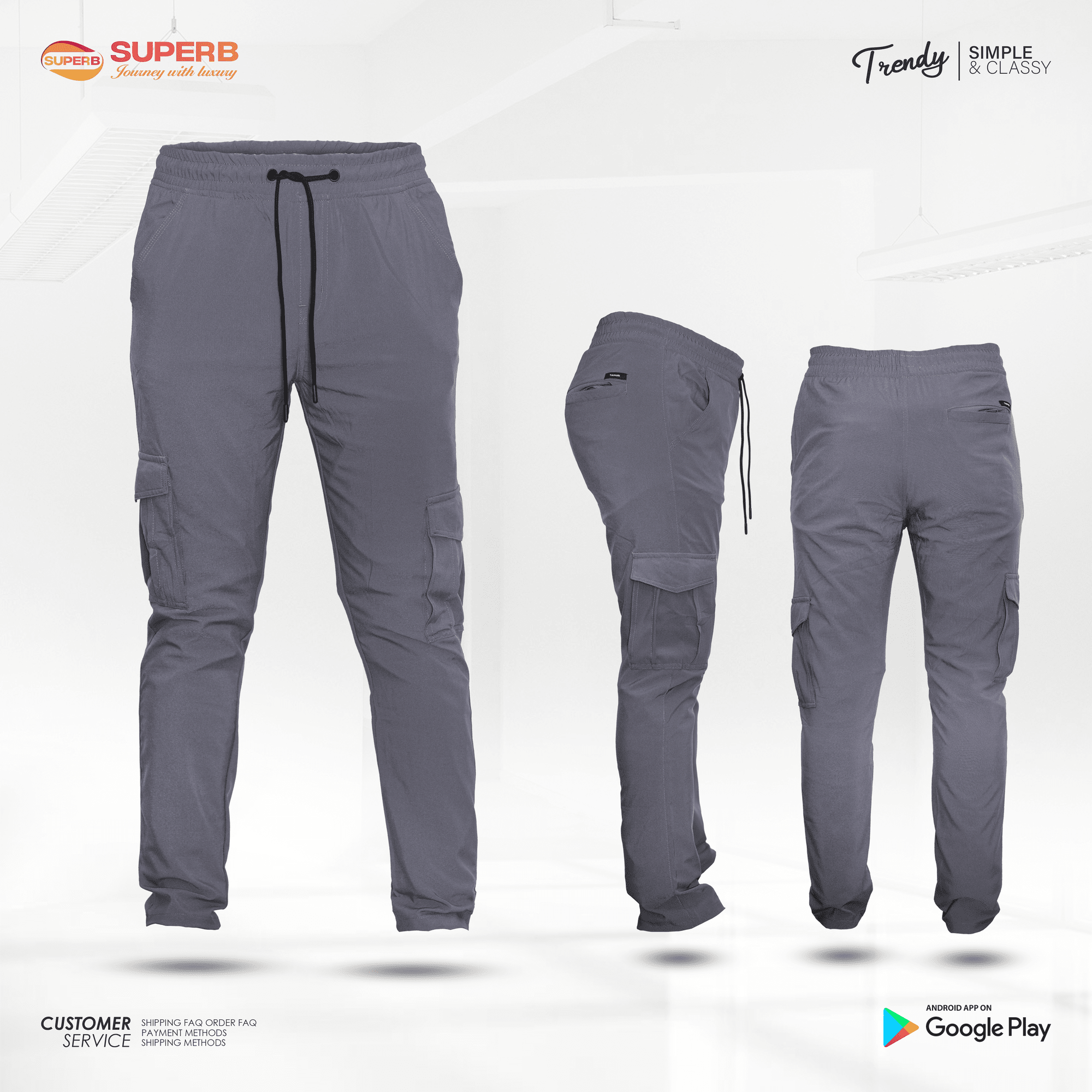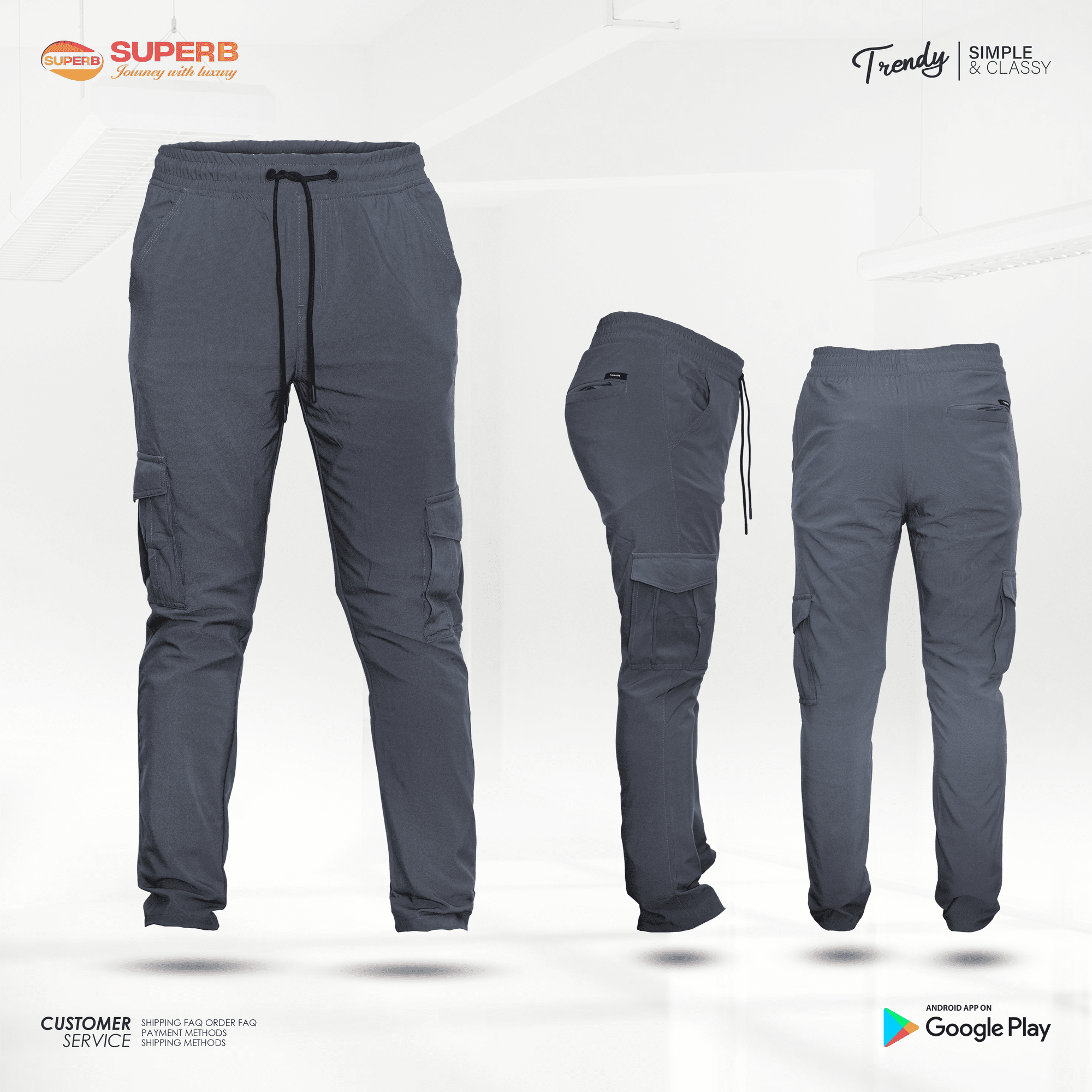 Short Description: Upgrade your casual and smart-casual wardrobe with the Tahari Cargo Trouser. Crafted from a premium fabric blend of 80% Polyester, 17% Rayon & 3% Spandex, these trousers offer durability, comfort, and stretch for all-day wear. Available in Navy, Black, Gray & Ash colors and sizes S–XXL.
