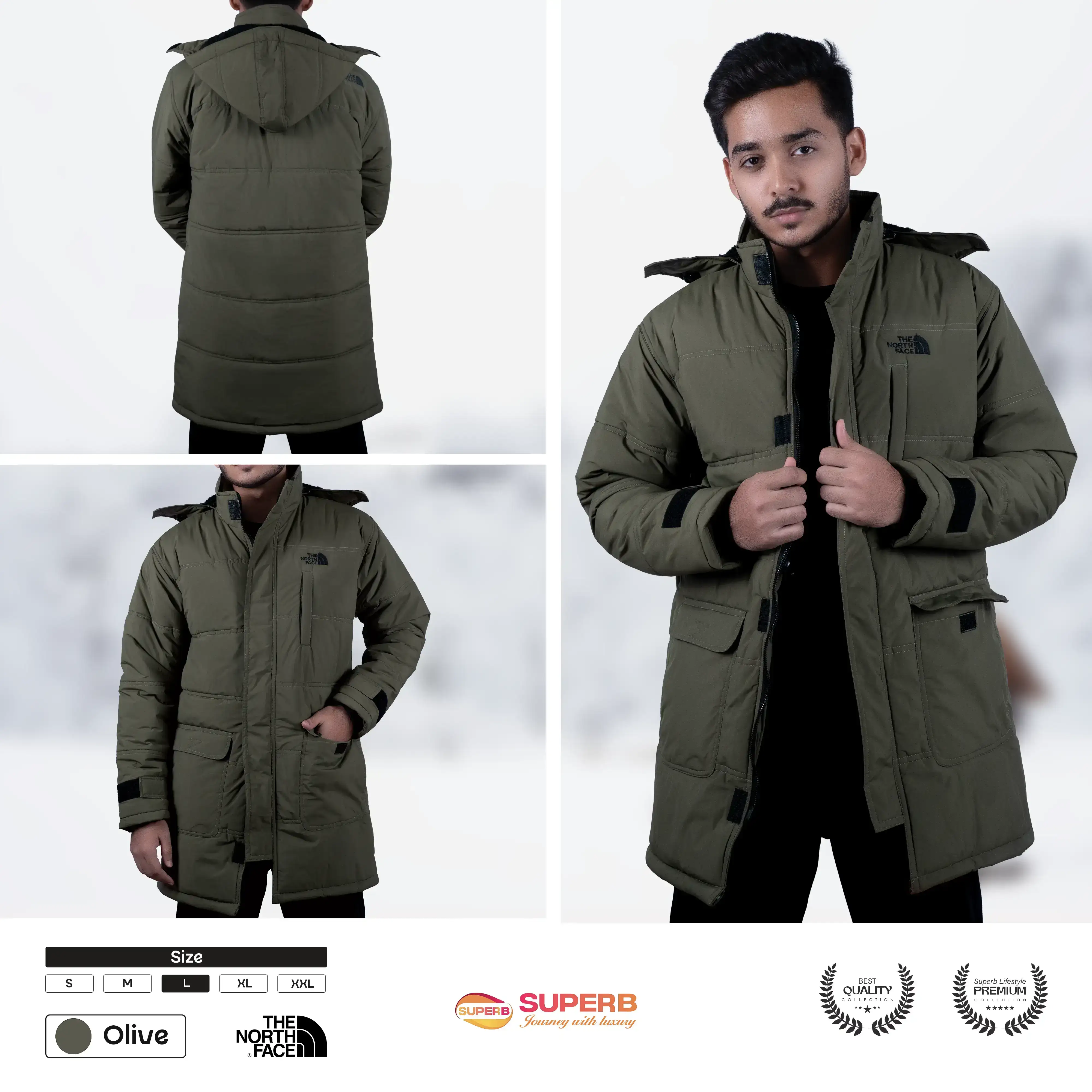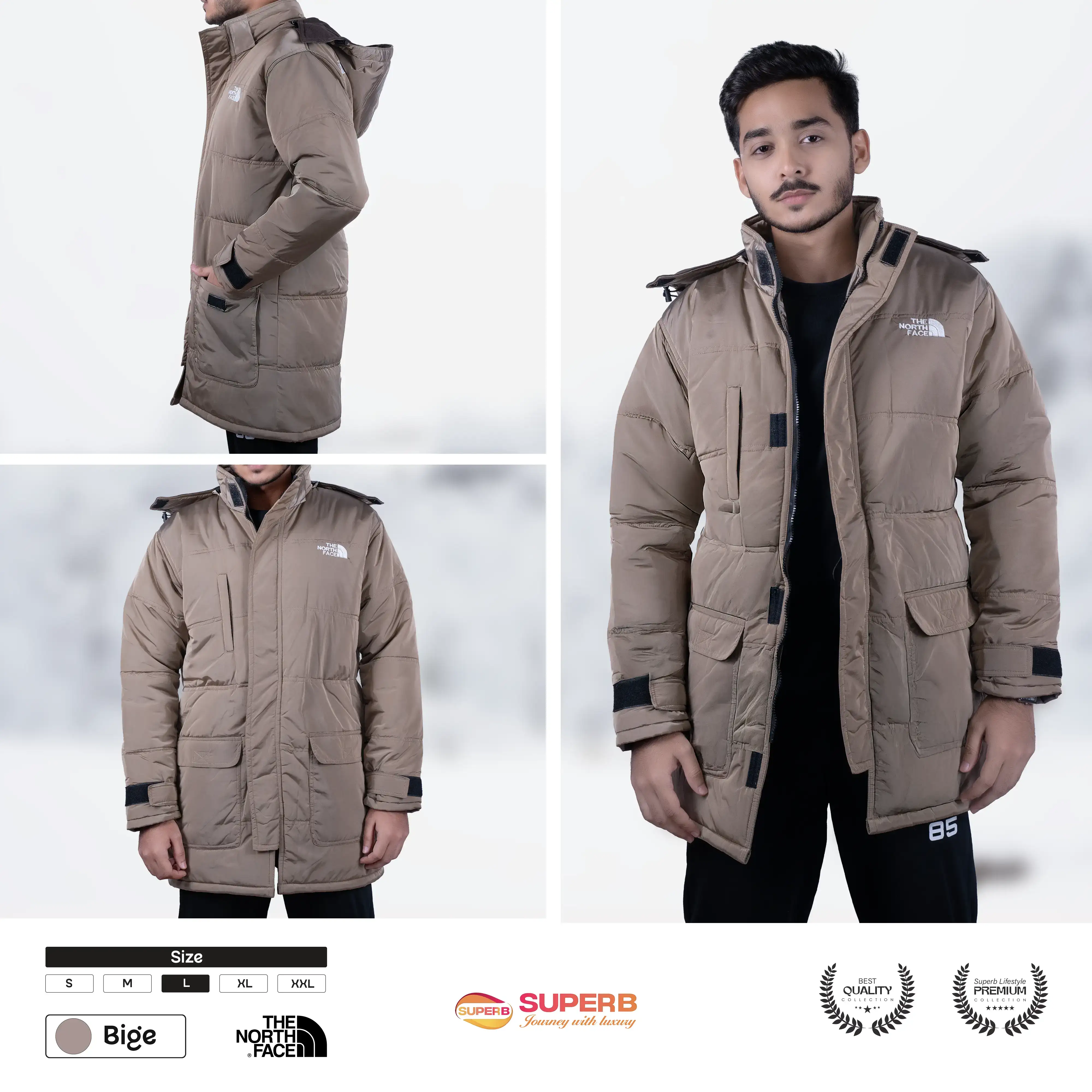 Short Description: Stay warm this winter with The North Face long insulated hooded coat. Featuring a storm flap, adjustable cuffs, and iconic branding, this coat delivers both style and reliable cold-weather protection.