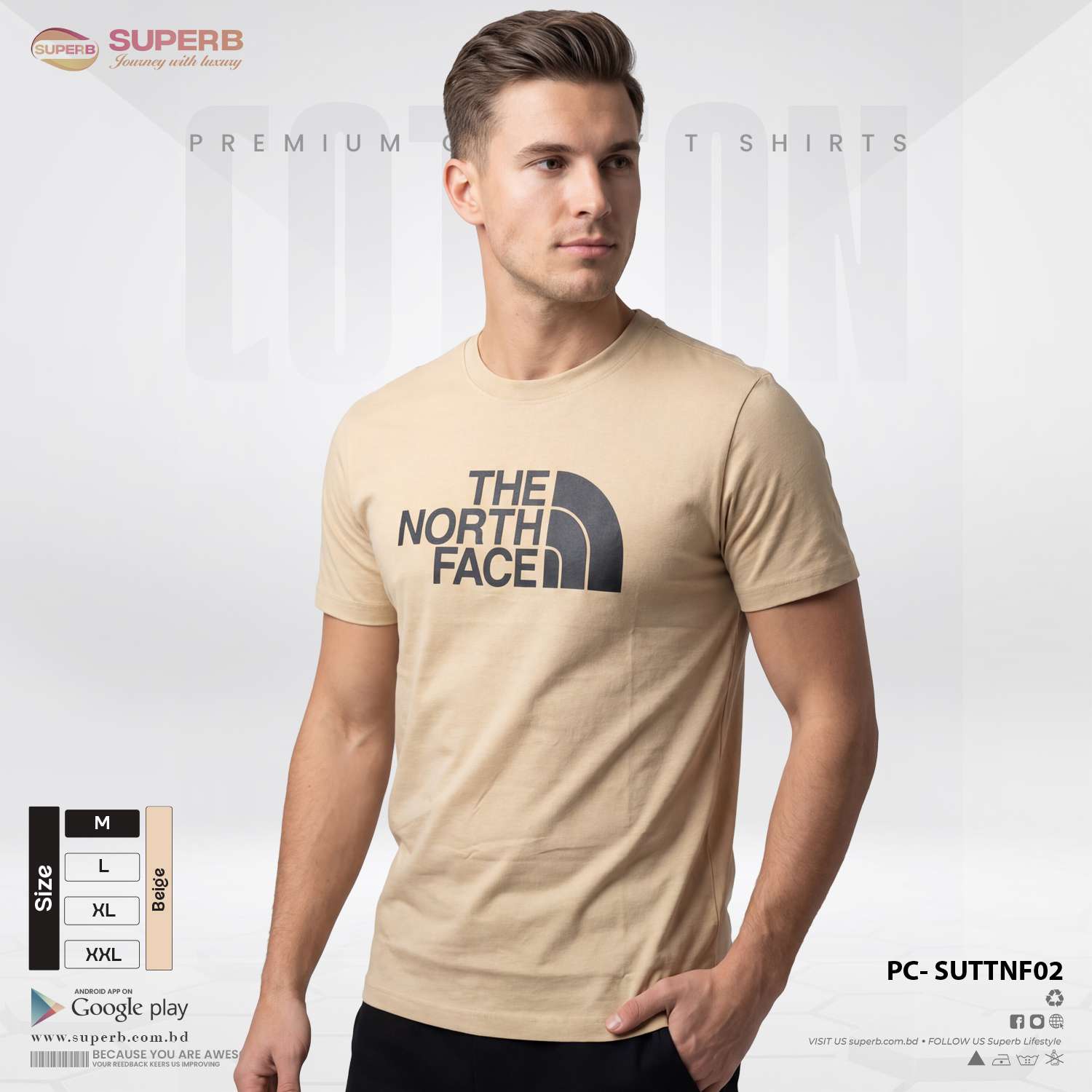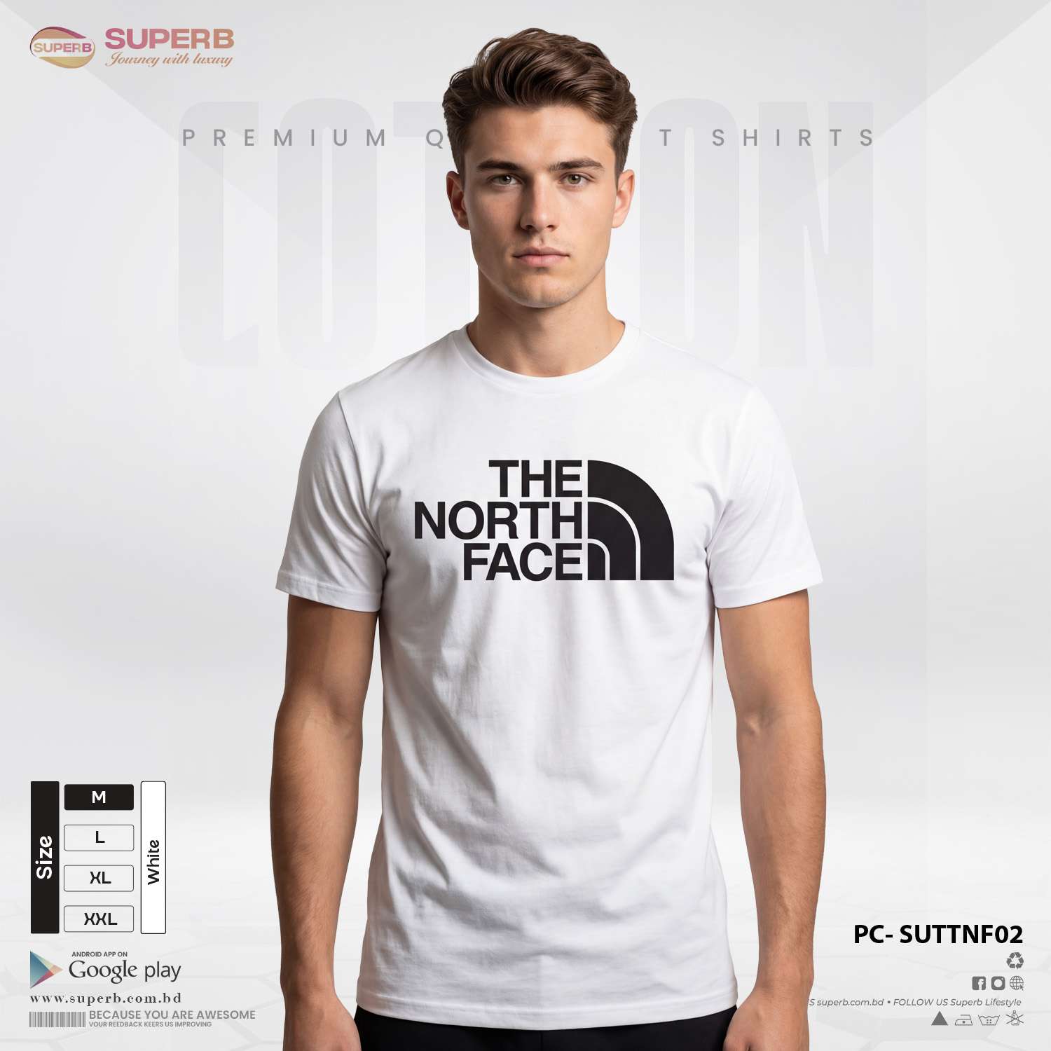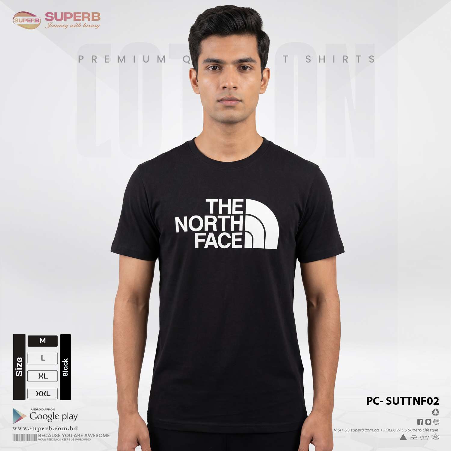 This The North Face premium logo t-shirt combines comfort, quality, and timeless style. Made from 180+ GSM premium cotton fabric, it offers a soft touch, excellent breathability, and long-lasting shape retention. The classic crew neck design and bold logo branding give it a sporty yet stylish look.