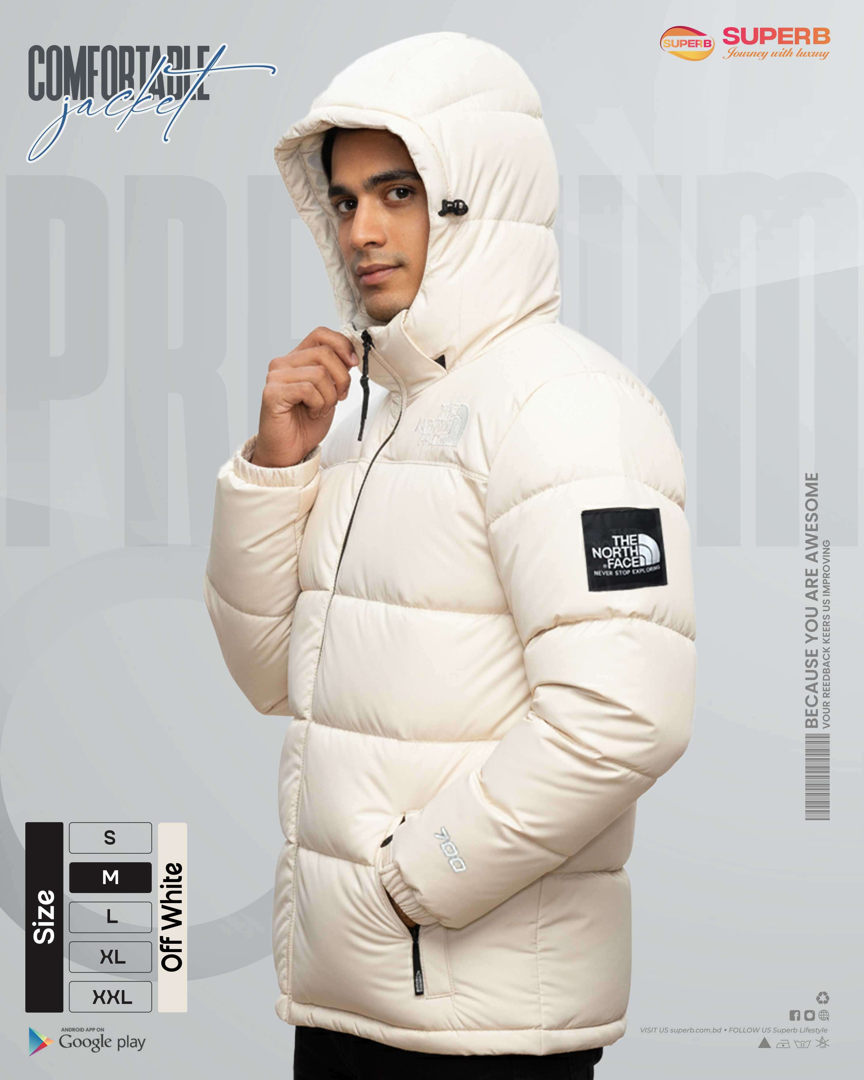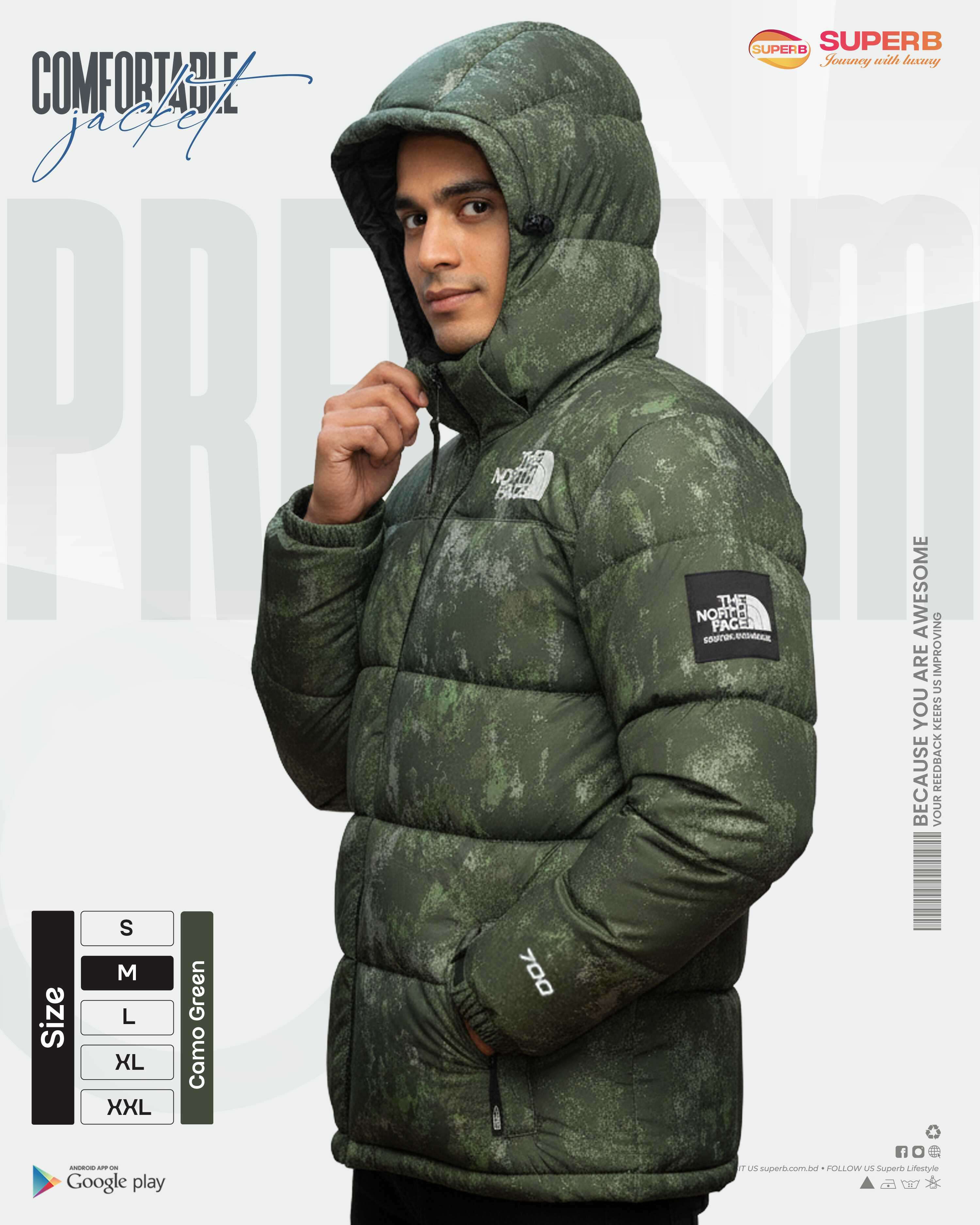 Short Description: Stay warm in extreme conditions with The North Face Down Hooded Jacket. Rated for -35°C, with 700 fill power down, a hood, and iconic branding. Available colors-Beige, Black, Maroon, Como Green, Navy, Off White and Camo print.