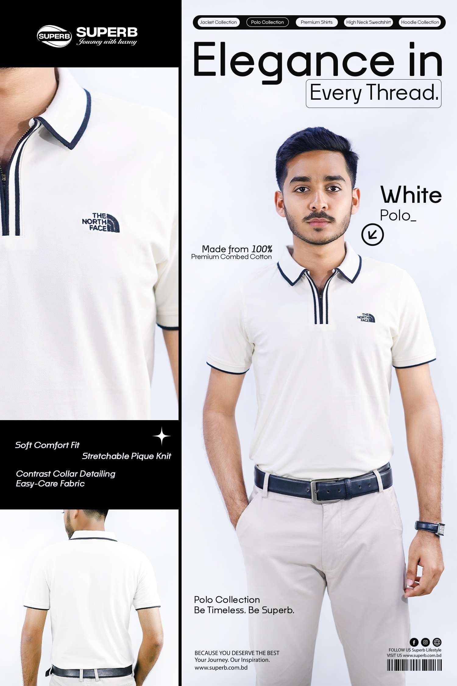 | Neck Style | Classic Polo Collar with Button Placket |