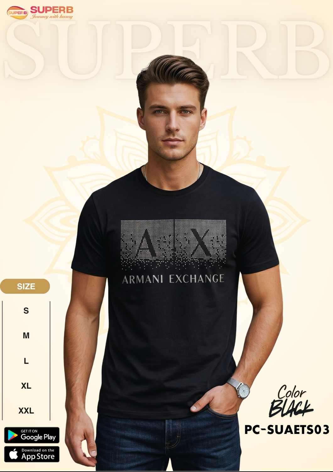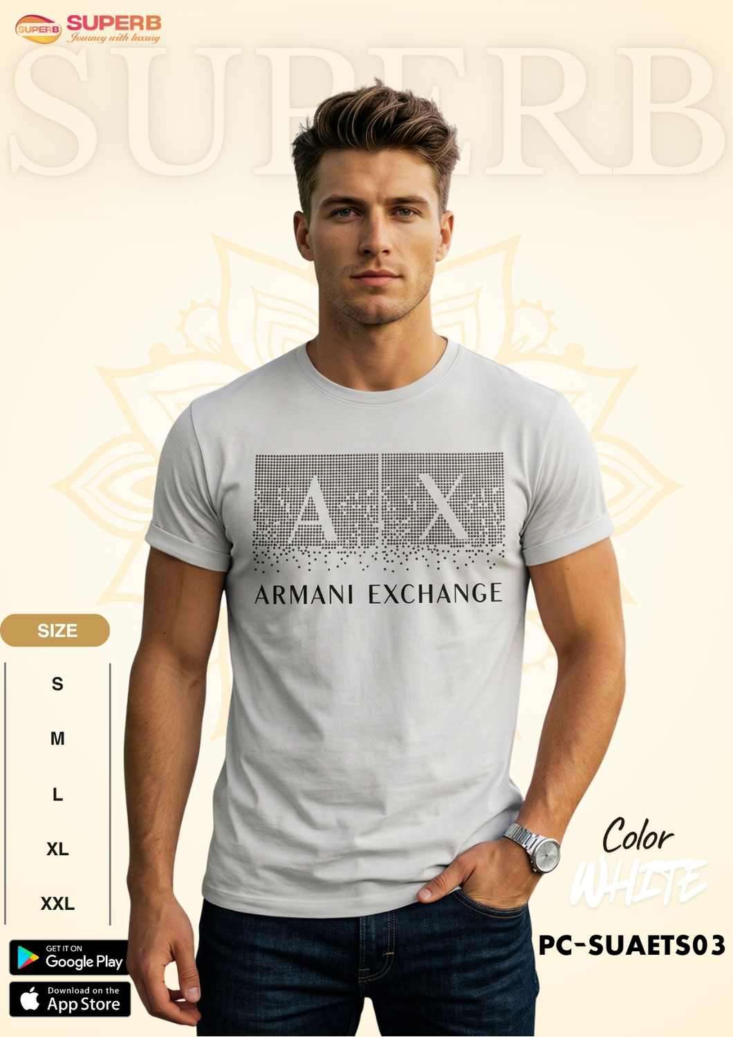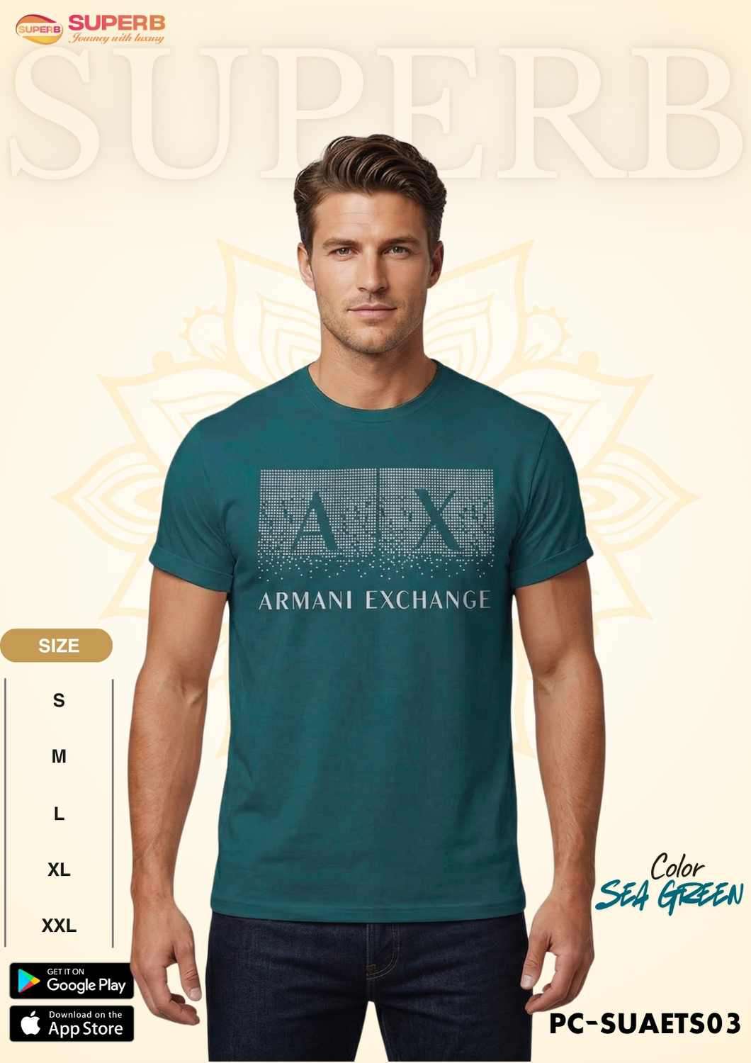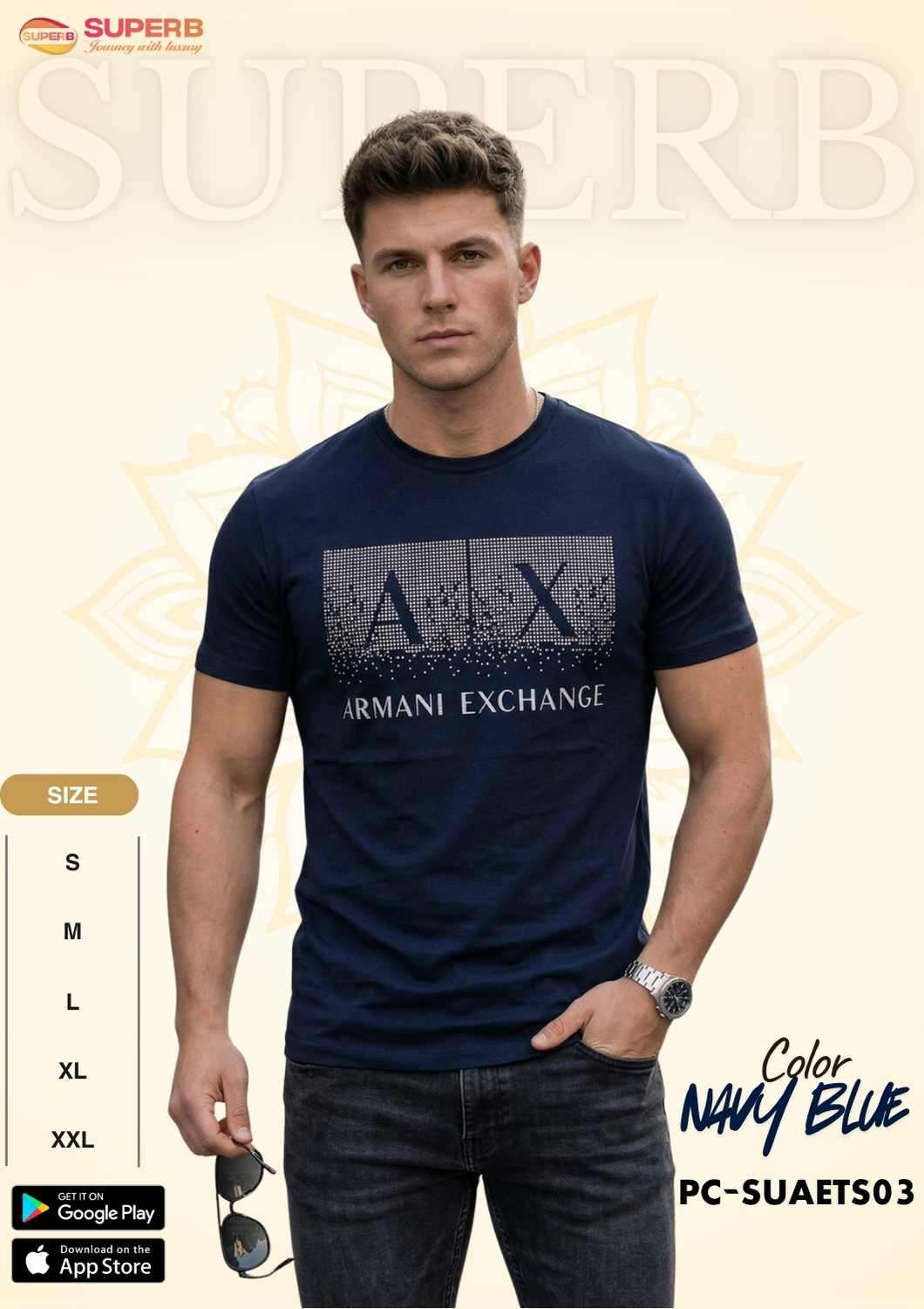 Short Description: A|X Armani Exchange Men's Regular Fit Cotton Crewneck T-Shirt – Featuring a gradient dotted A|X icon logo with a written logo underneath, this stylish and comfortable tee is made from a soft 95% cotton, 5% elastane blend. Designed with a crew neck and short sleeves, it's perfect for everyday wear. Available in Navy Blue, Olive, Deep Sea Green, Black and White.