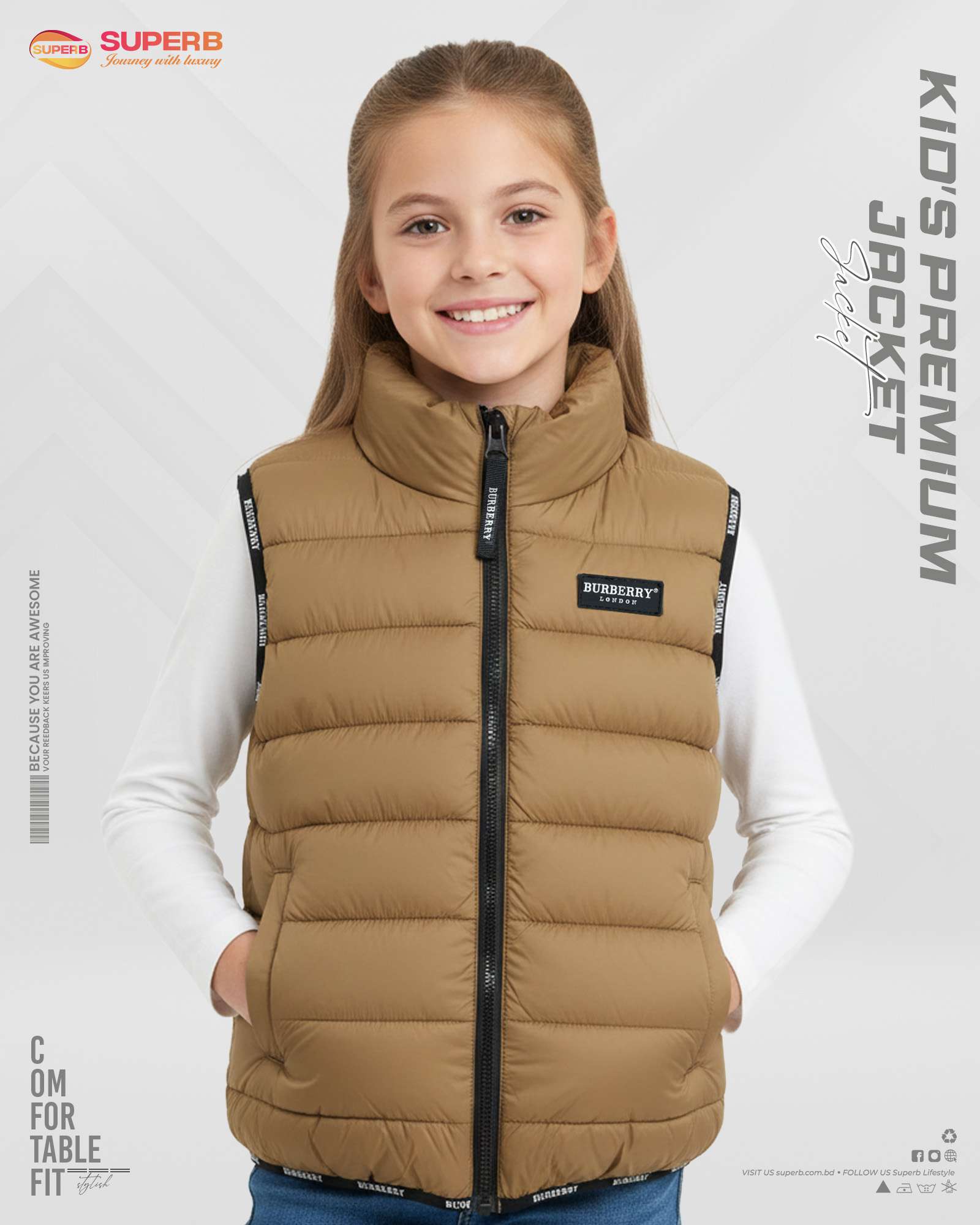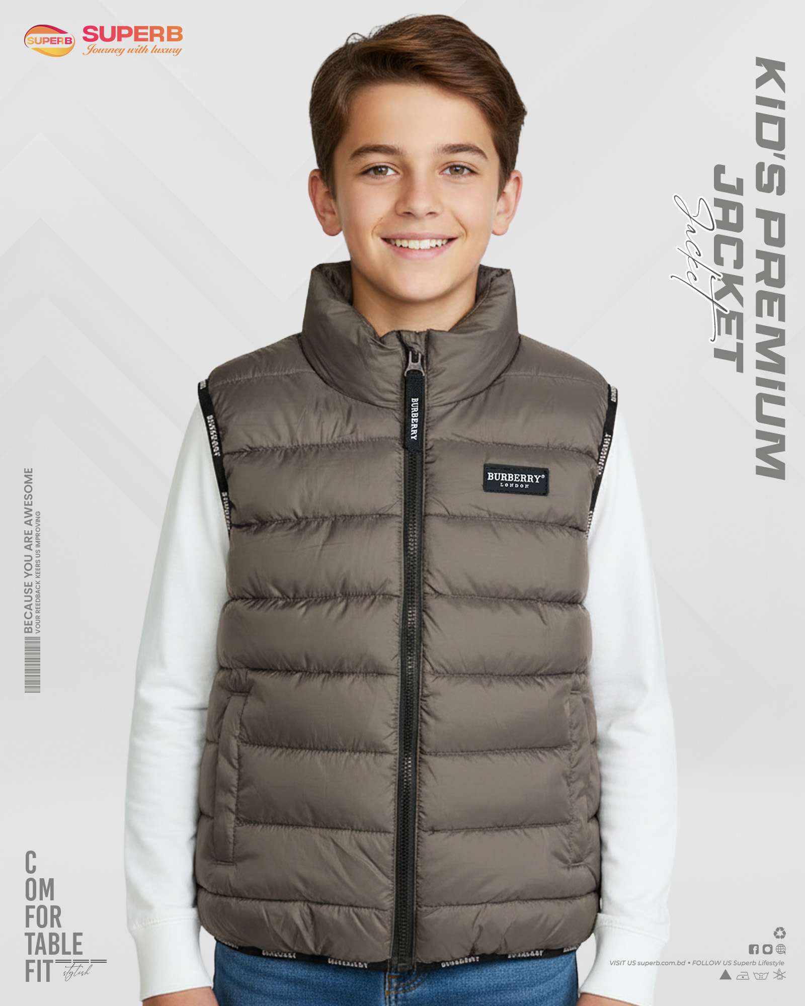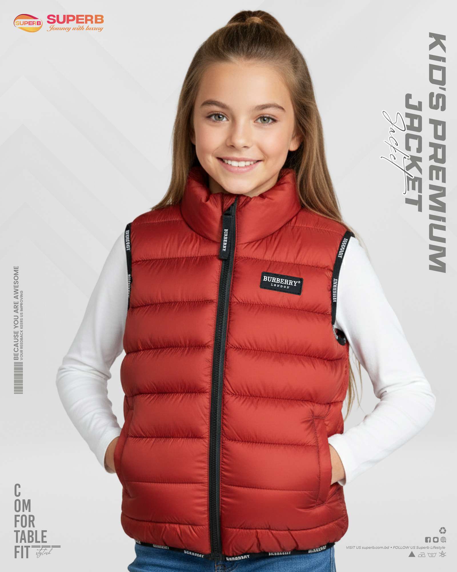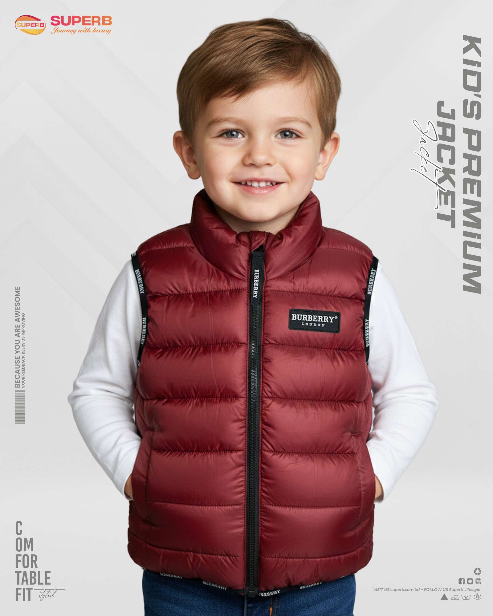 Give your child a luxurious winter look with our Premium Burberry-Style Kids Vest Collection. Designed for both boys and girls, this vest provides balanced warmth without feeling heavy. The soft quilting, premium-grade outer fabric, and high-quality zipper make it practical while maintaining a stylish, modern look.