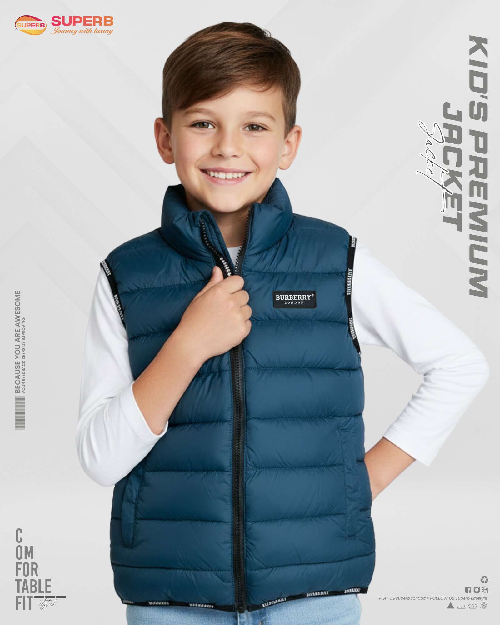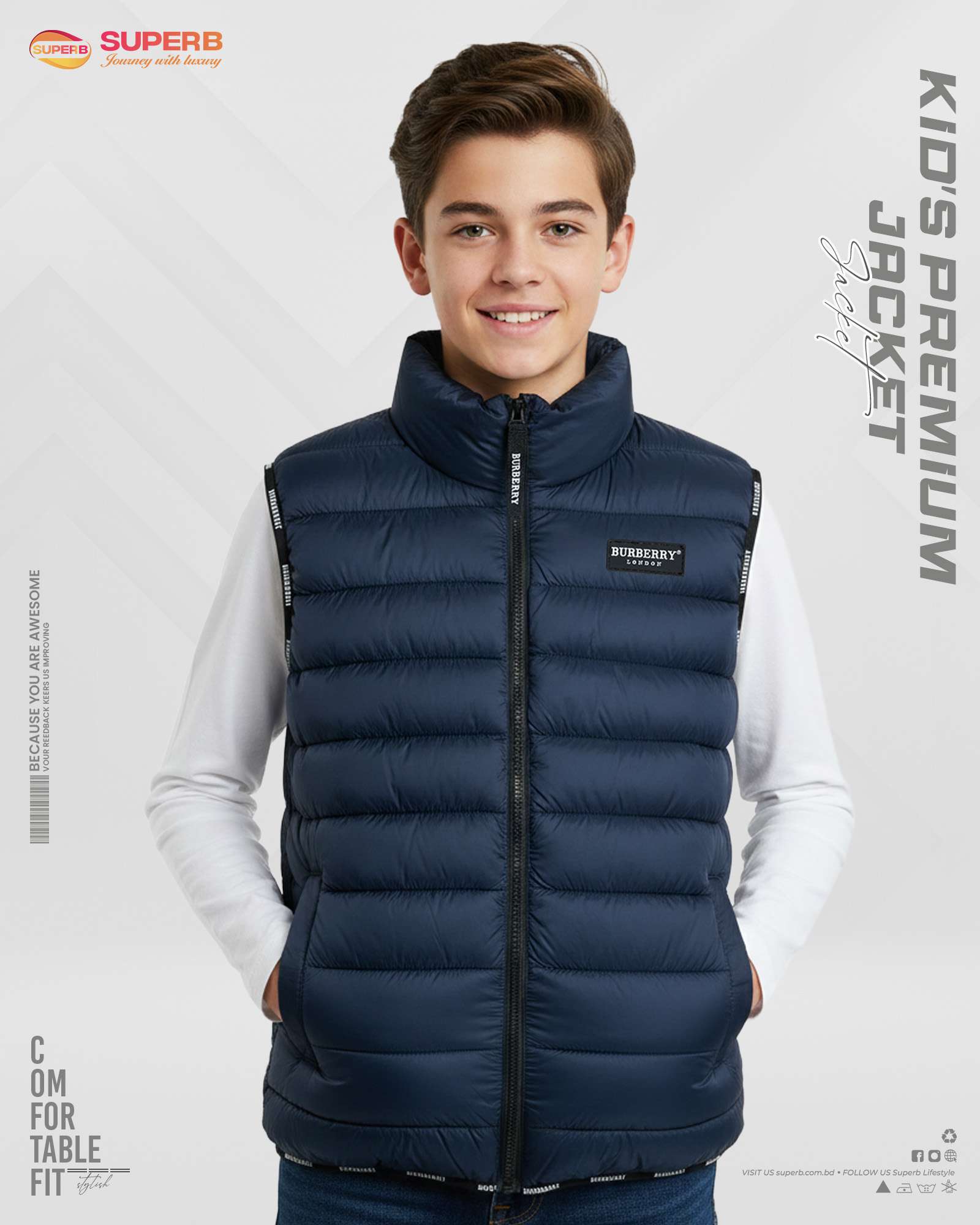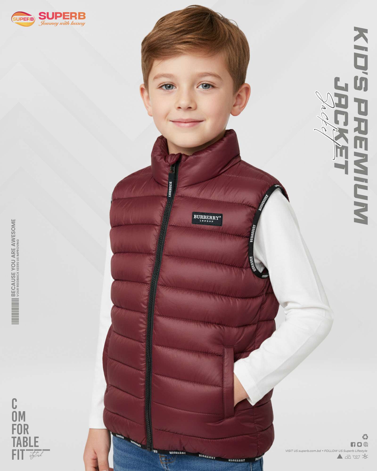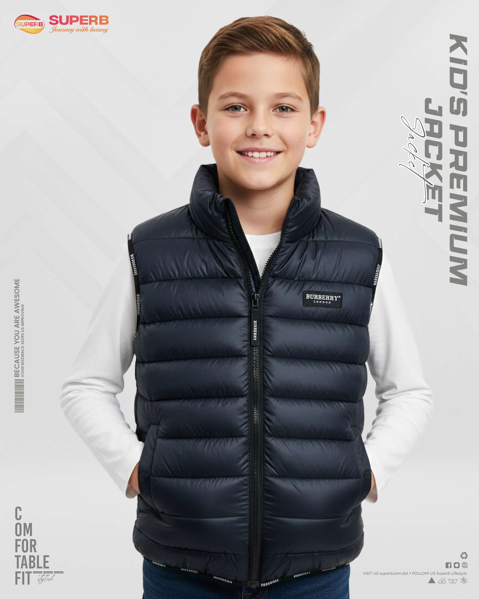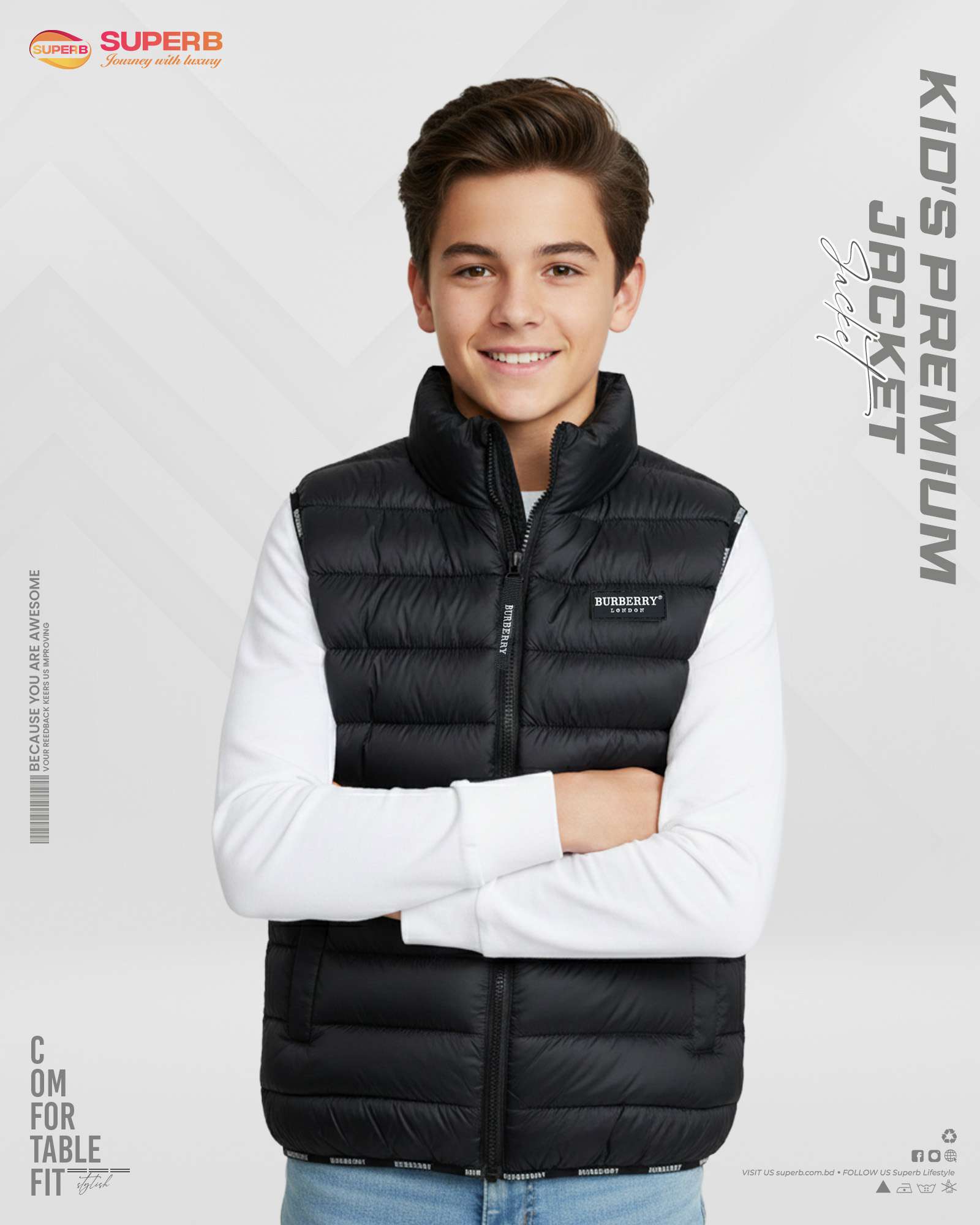 Give your child a luxurious winter look with our Premium Burberry-Style Kids Vest Collection. Designed for both boys and girls, this vest provides balanced warmth without feeling heavy. The soft quilting, premium-grade outer fabric, and high-quality zipper make it practical while maintaining a stylish, modern look.