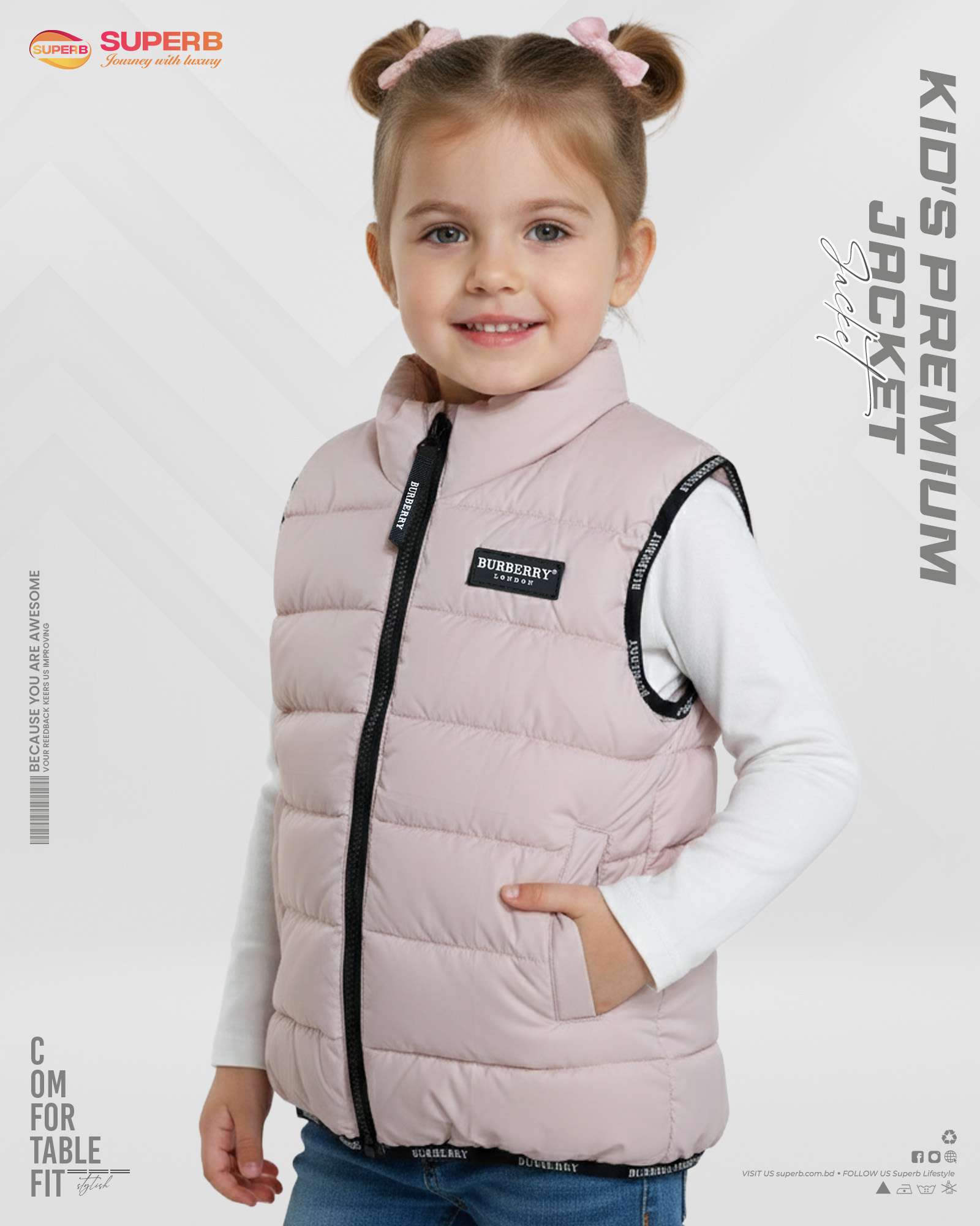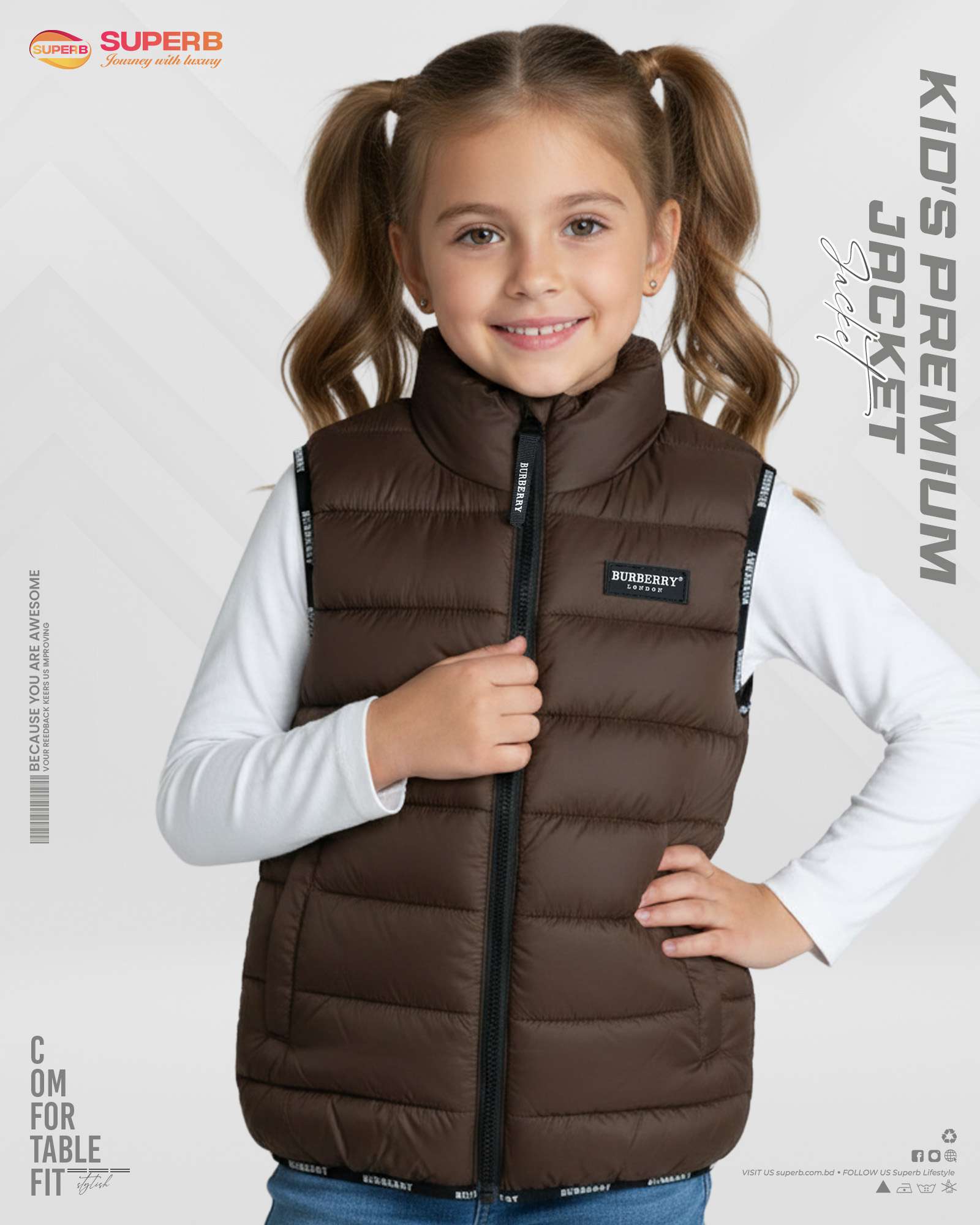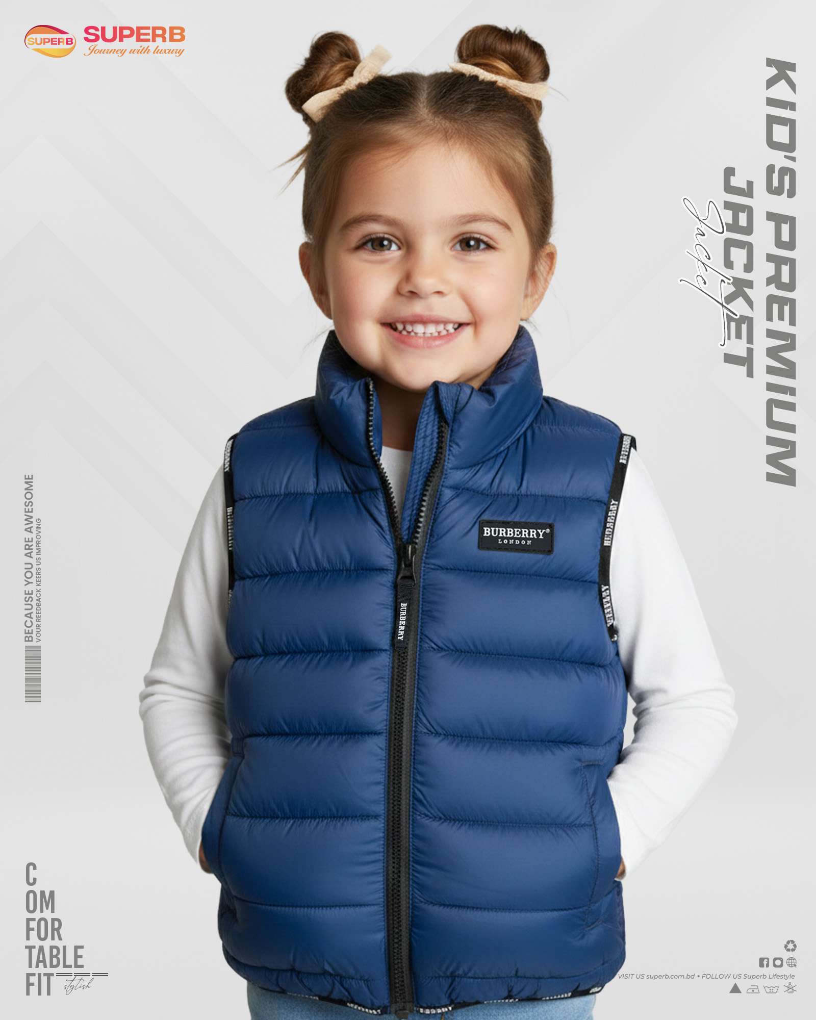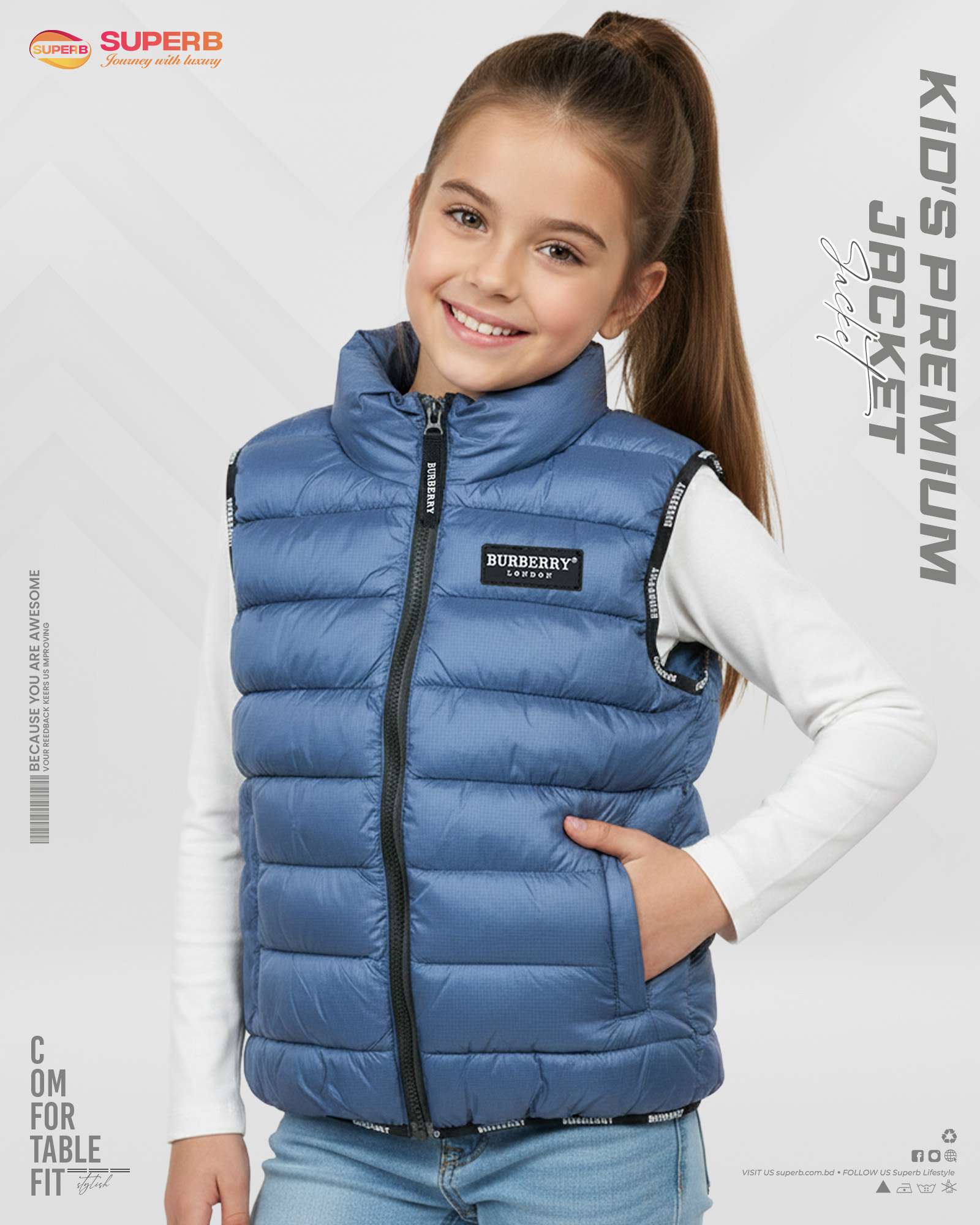 Give your child a luxurious winter look with our Premium Burberry-Style Kids Vest Collection. Designed for both boys and girls, this vest provides balanced warmth without feeling heavy. The soft quilting, premium-grade outer fabric, and high-quality zipper make it practical while maintaining a stylish, modern look.
