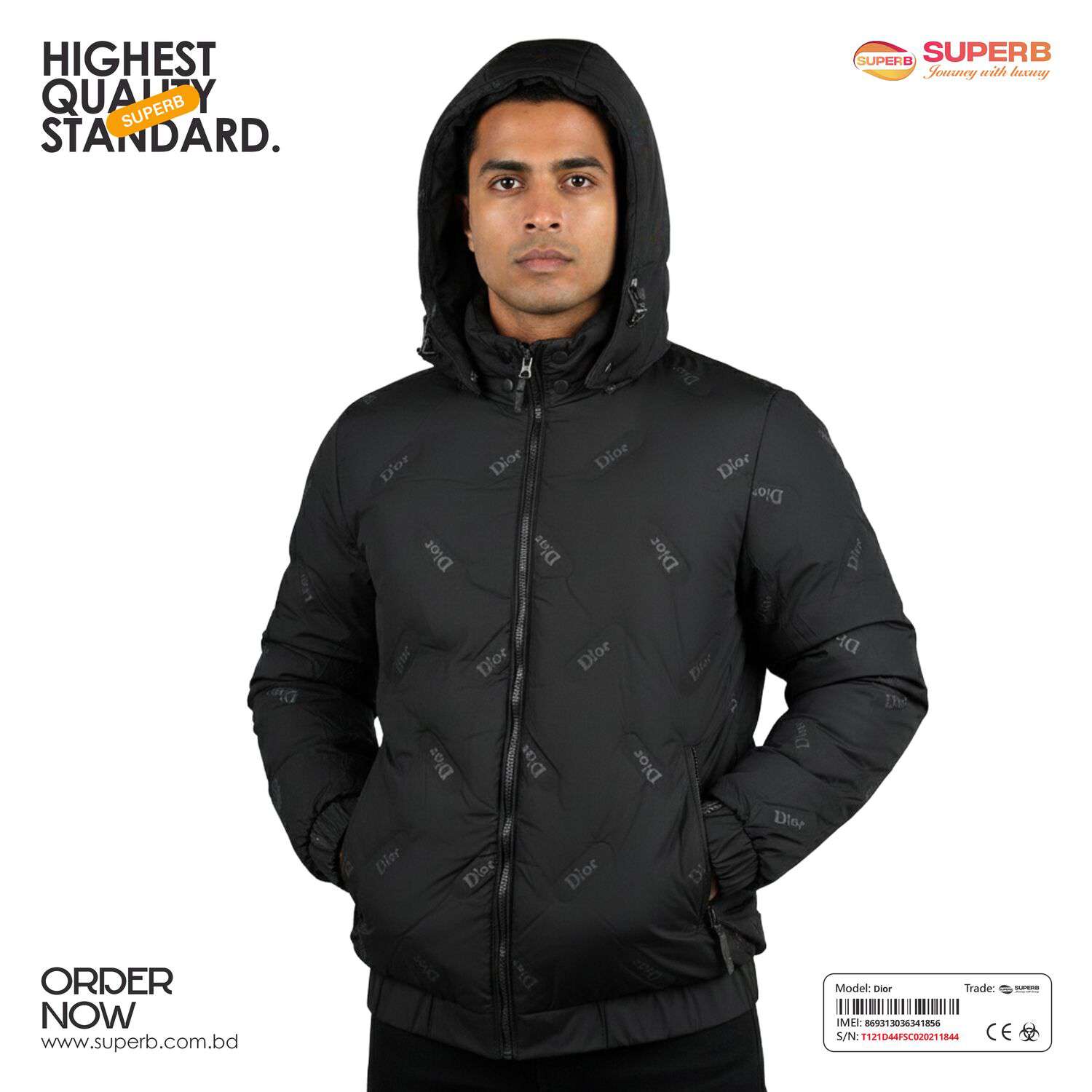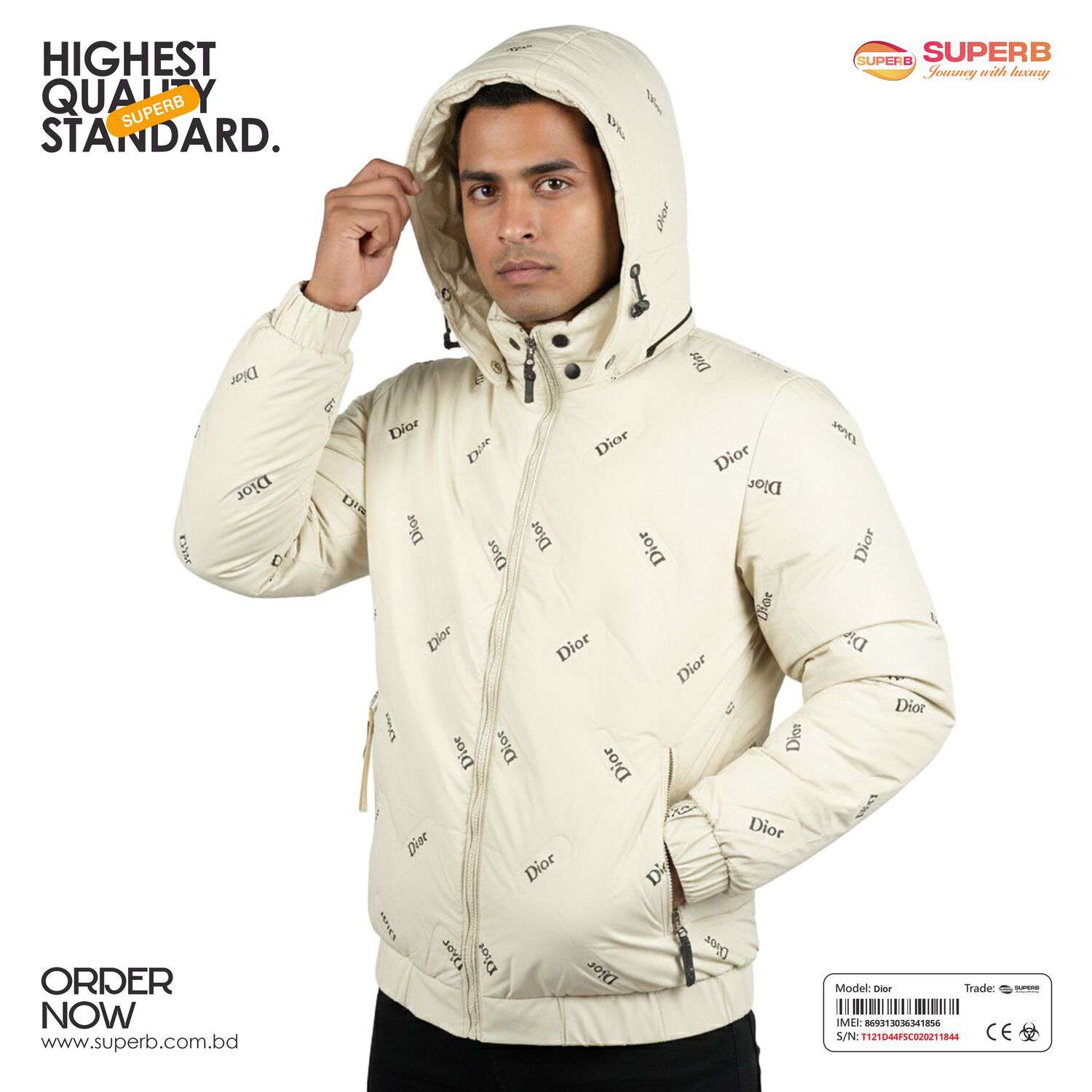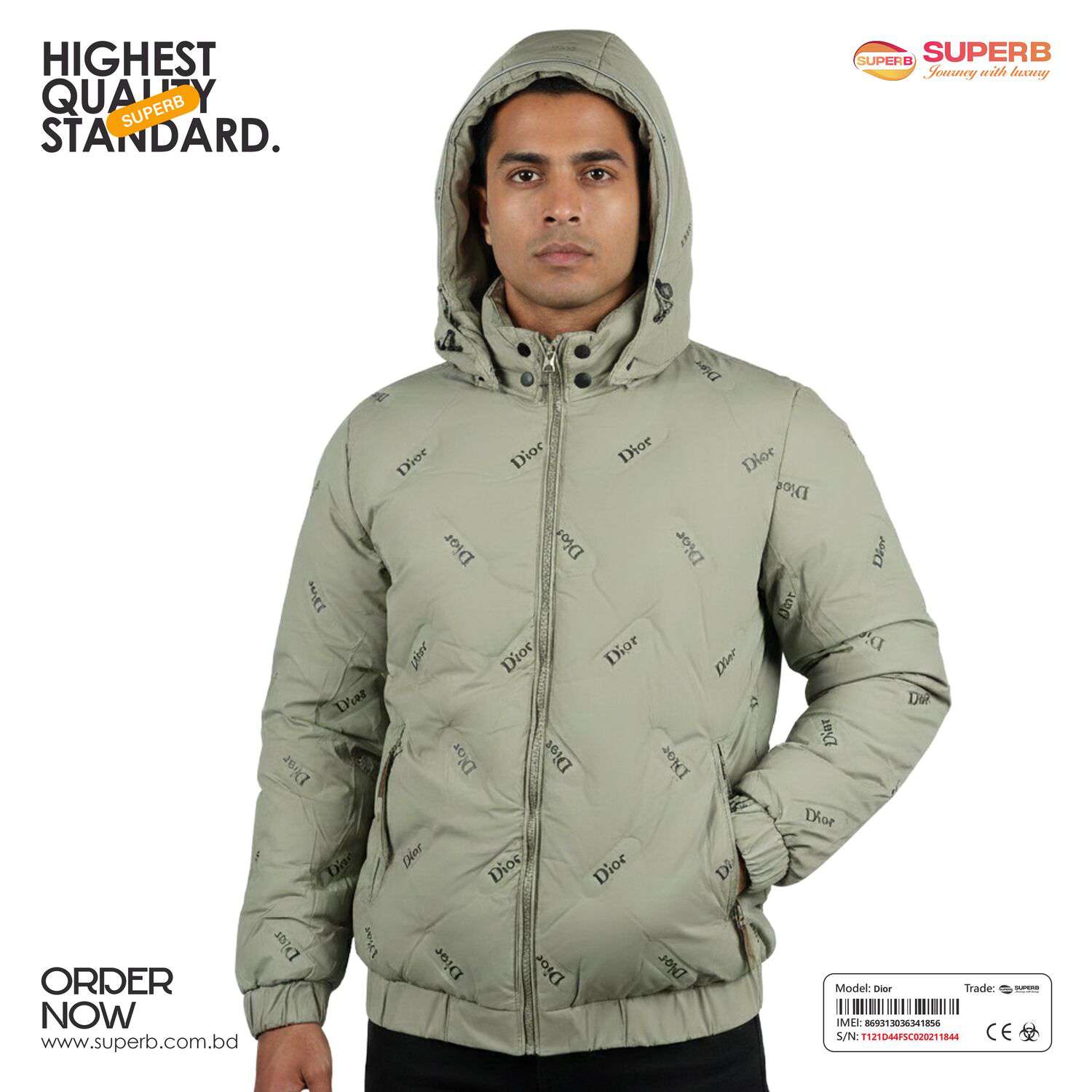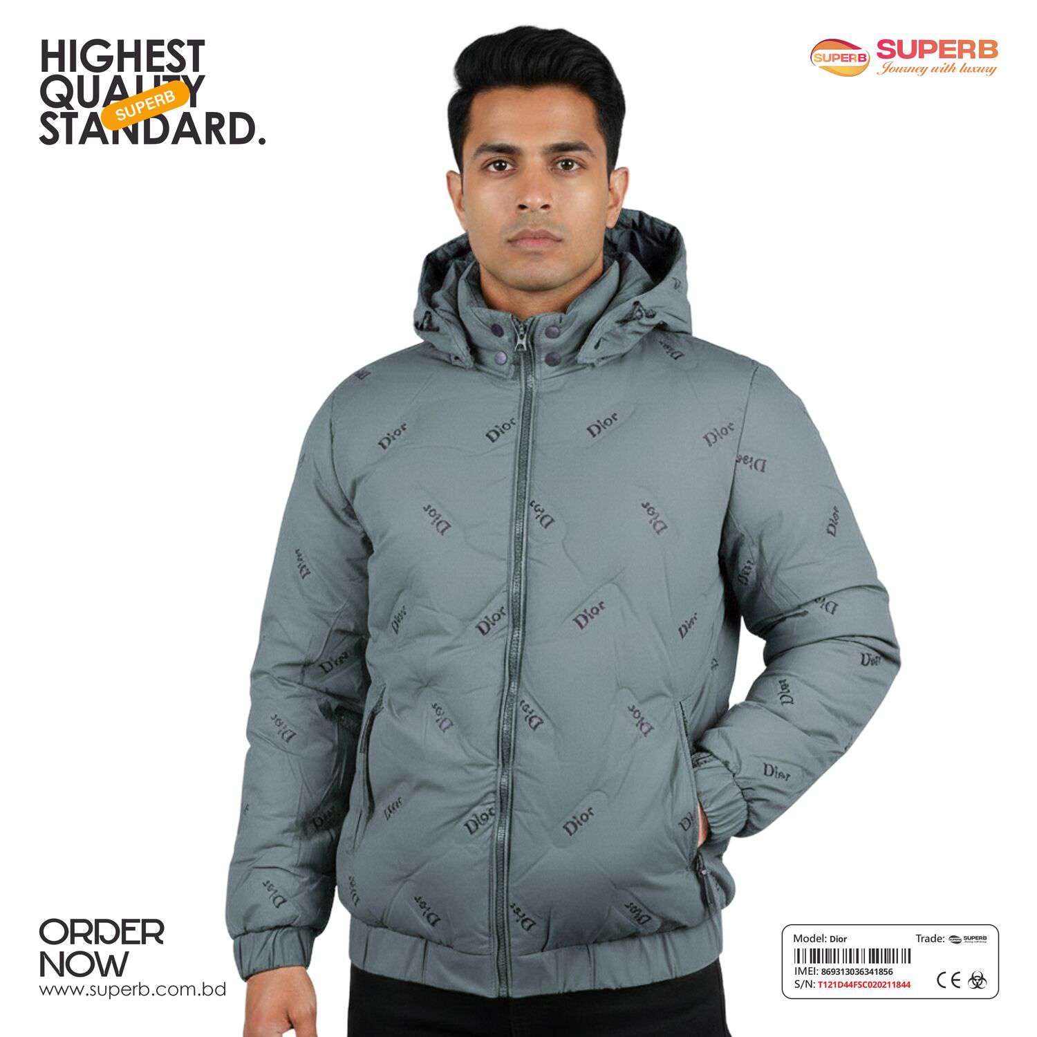 Short Description: Shop the Dior Down Jacket with all-over logo print and hood. A premium, warm winter essential with a modern fit and luxury branding. Available Colors- Black, Mint green ,Off White, Trianon Gray